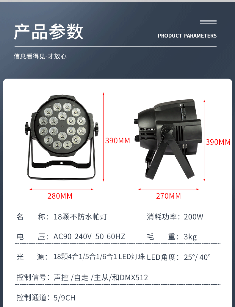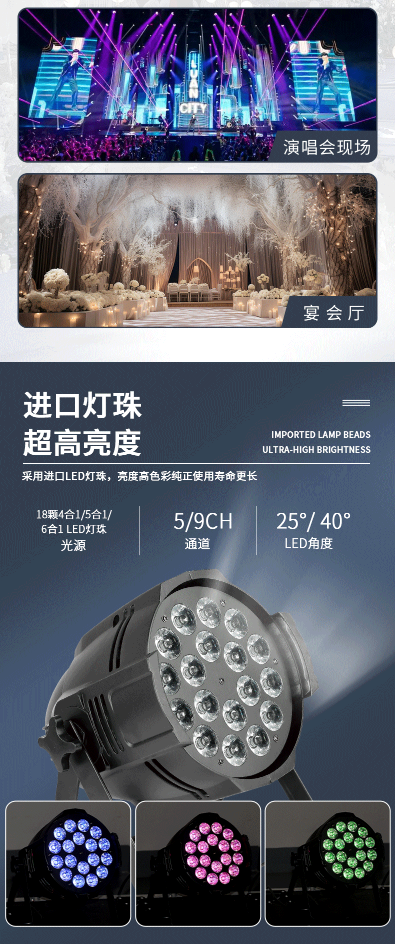 18개의 4-in-1 풀 컬러 파 라이트, 균일한 착색, 고휘도 LED 착색 라이트, 웨딩 바 쇼 무대 조명