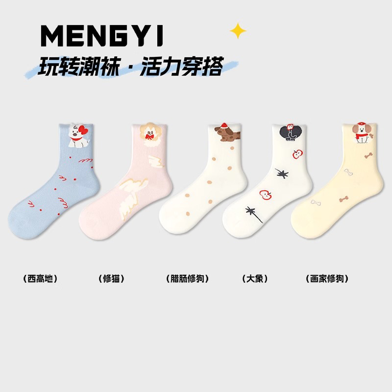 귀여운 만화 여성용 종아리 양말 여름 얇은 순면 땀 흡수 및 탈취제 겉옷 유행 동물 양말 Zhuji 도매