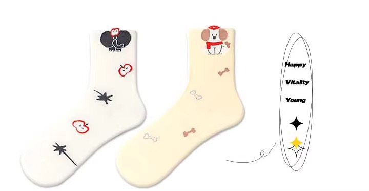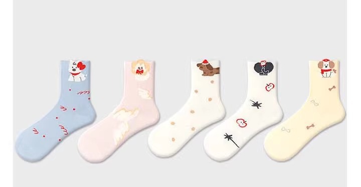 귀여운 만화 여성용 종아리 양말 여름 얇은 순면 땀 흡수 및 탈취제 겉옷 유행 동물 양말 Zhuji 도매스토어 가기