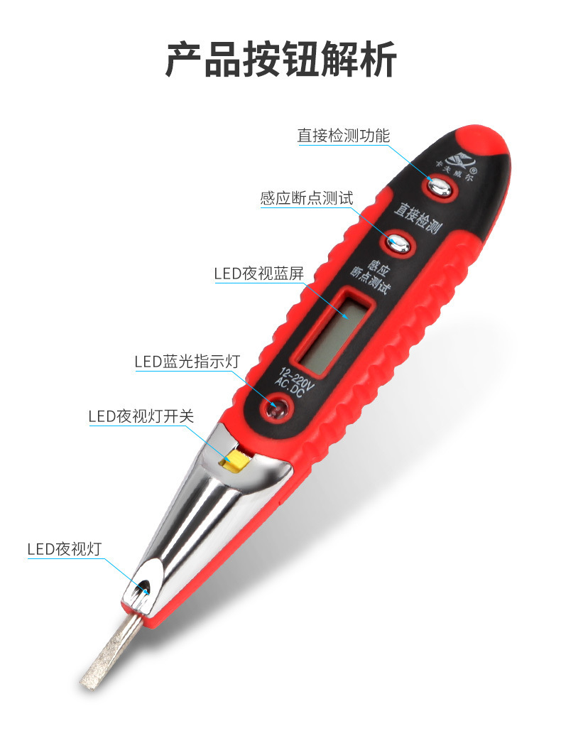 • 가정용 전기 테스트 펜 [디지털 화면] [12-220V]