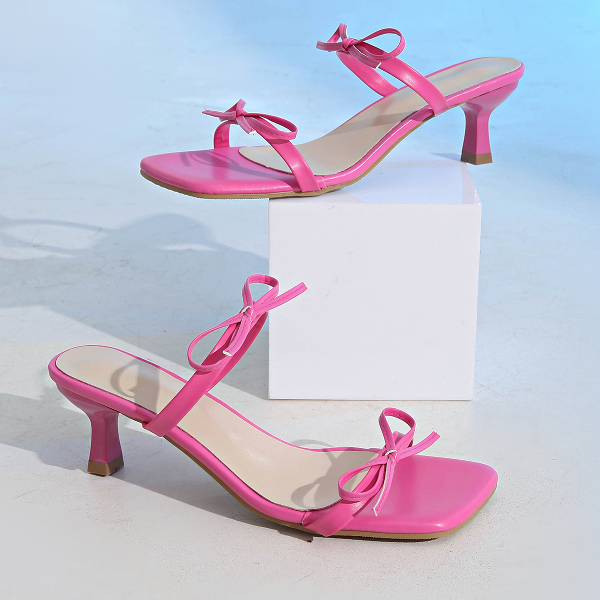 국경 간 대외 무역 대형 여성 신발 2025 여름 새로운 스타일 다목적 스타일 스틸레토 힐 원라인 보우 하이힐 샌들