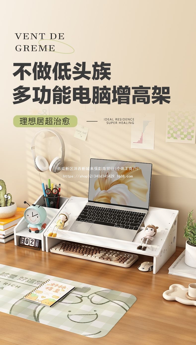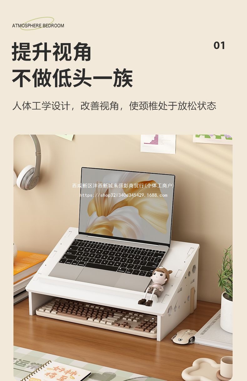 노트북 냉각 스탠드 데스크탑 테이블 높이 조절 목 보호대 사무실 기숙사 다기능 스토리지