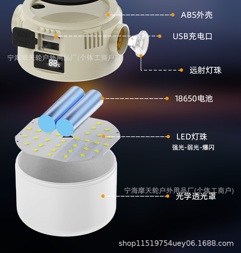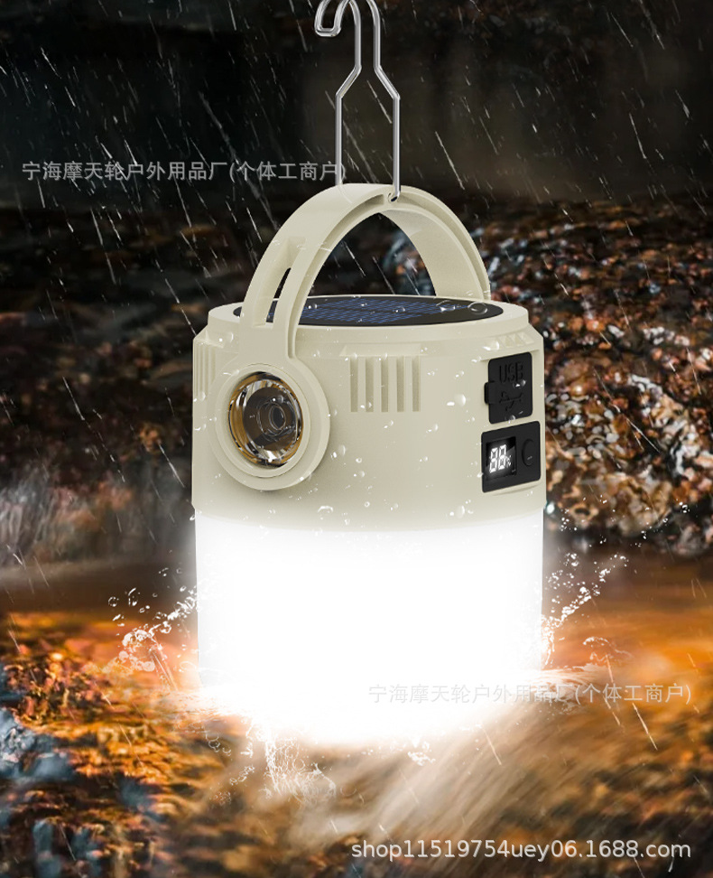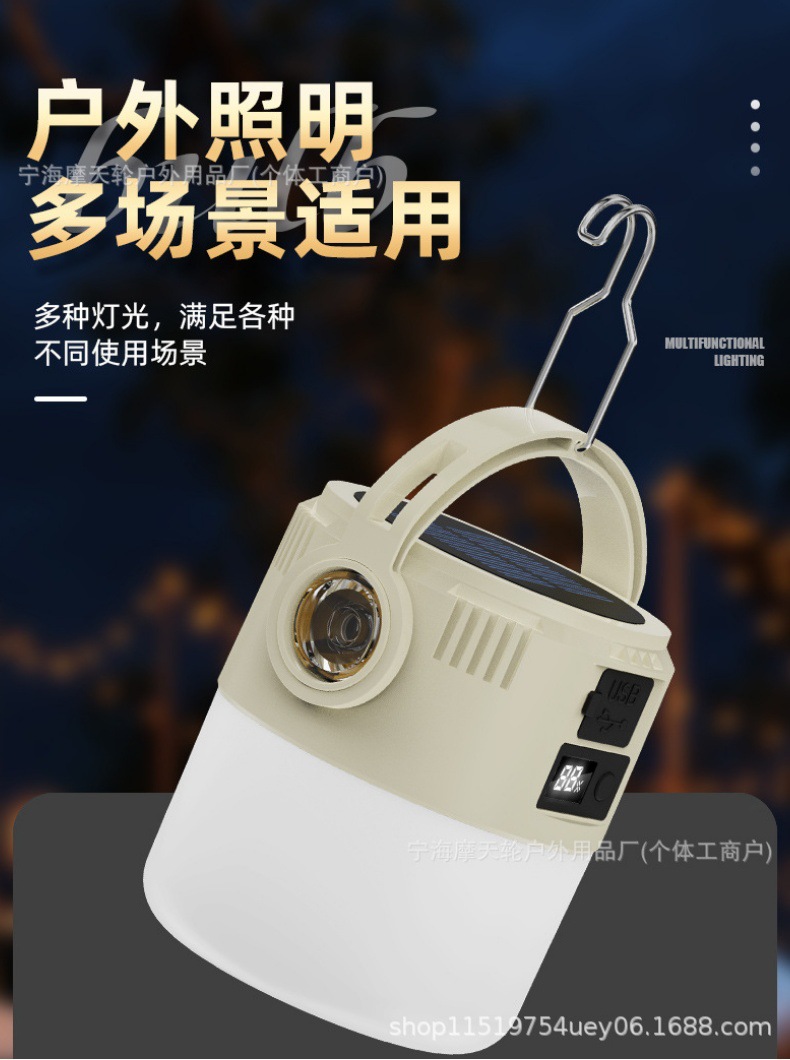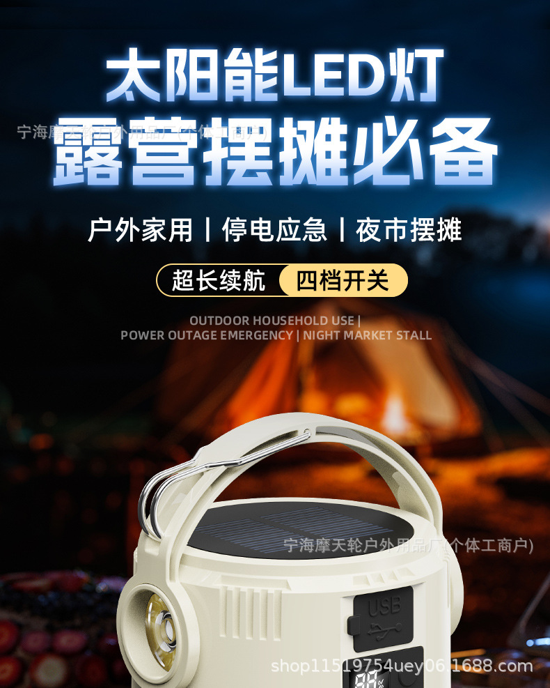 태양 캠핑 램프 야외 슈퍼 밝은 충전식 손전등 캠핑 전구 텐트 램프 조명 야간 시장 스톨 램프