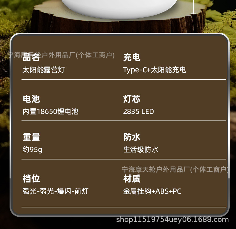 • 듀얼 광원 캠핑 라이트 + 태양광 충전