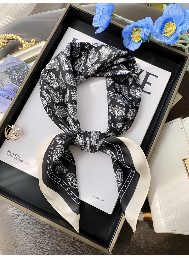 여성을위한 고급 한국 스타일 작은 사각형 스카프 2025 새로운 캐슈 꽃 스카프 여성 목 액세서리 넥 스트랩 장식
