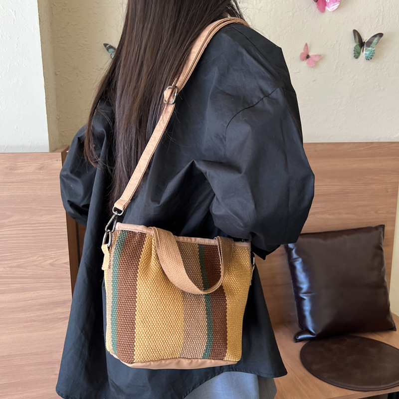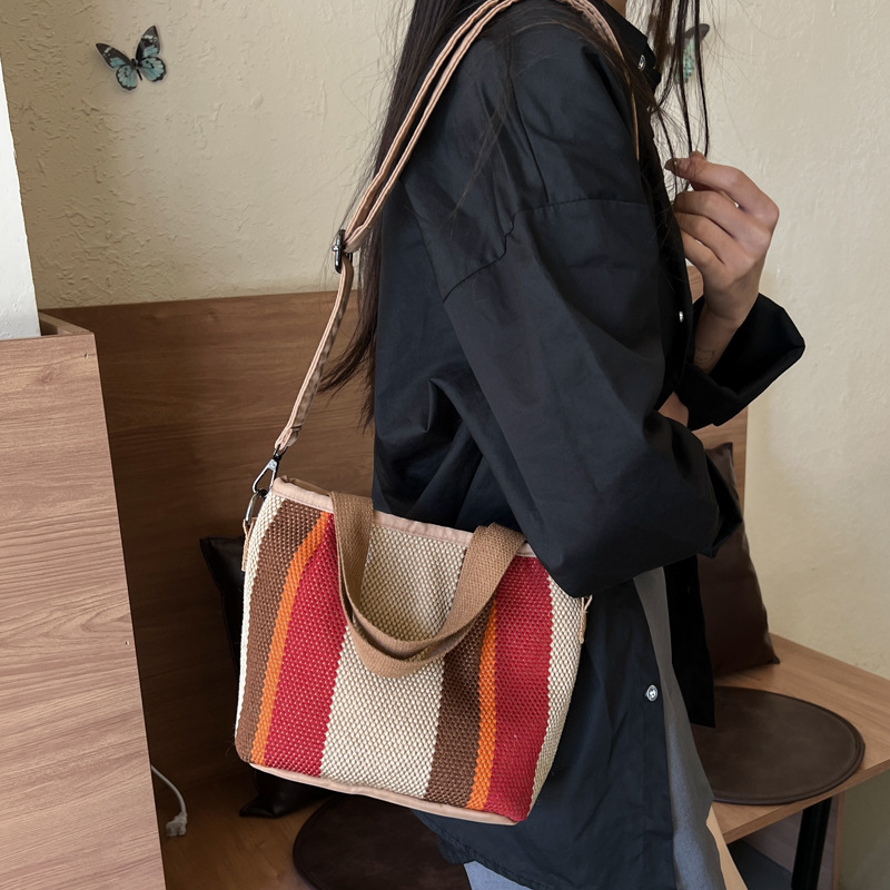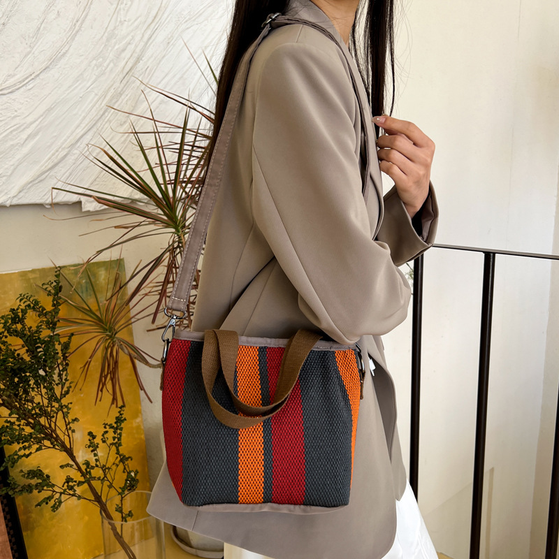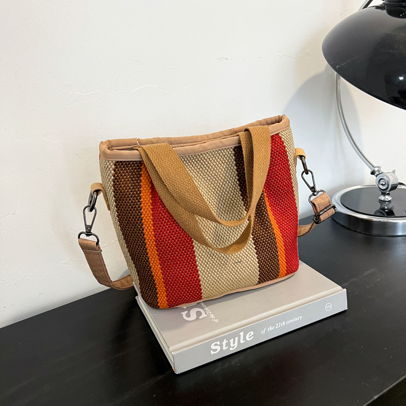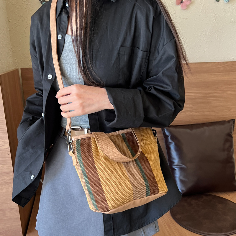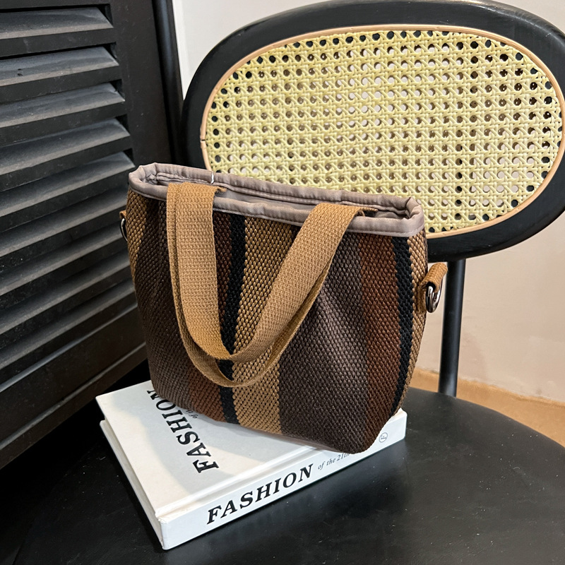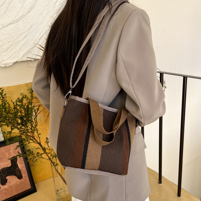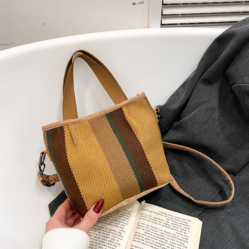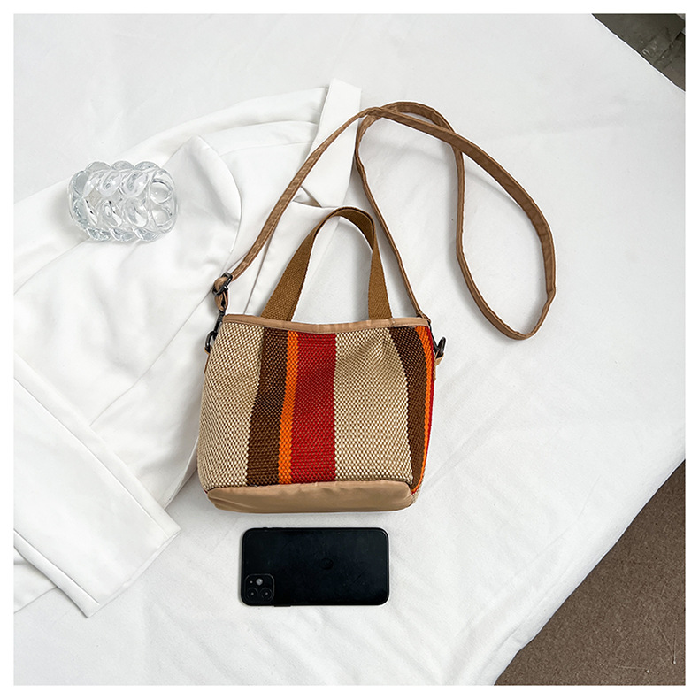 새로운 캐주얼 대용량 작은 사각형 가방 여성 스트라이프 여름 틈새 디자인 통근 기질 복고풍 메신저 가방