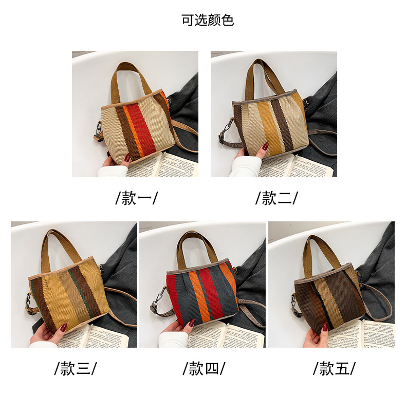 새로운 캐주얼 대용량 작은 사각형 가방 여성 스트라이프 여름 틈새 디자인 통근 기질 복고풍 메신저 가방스토어 가기