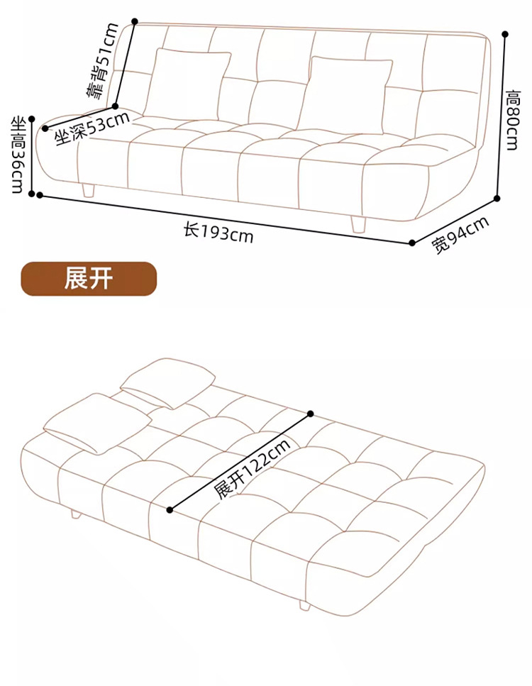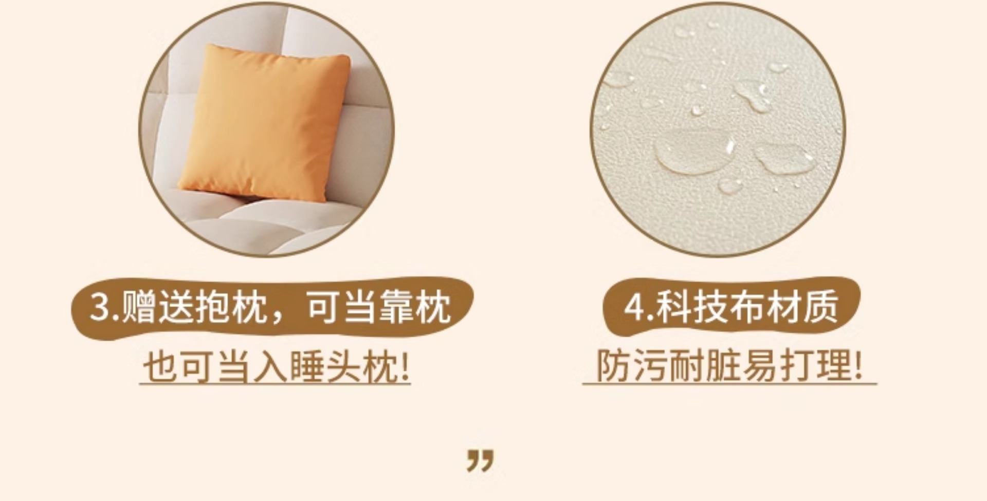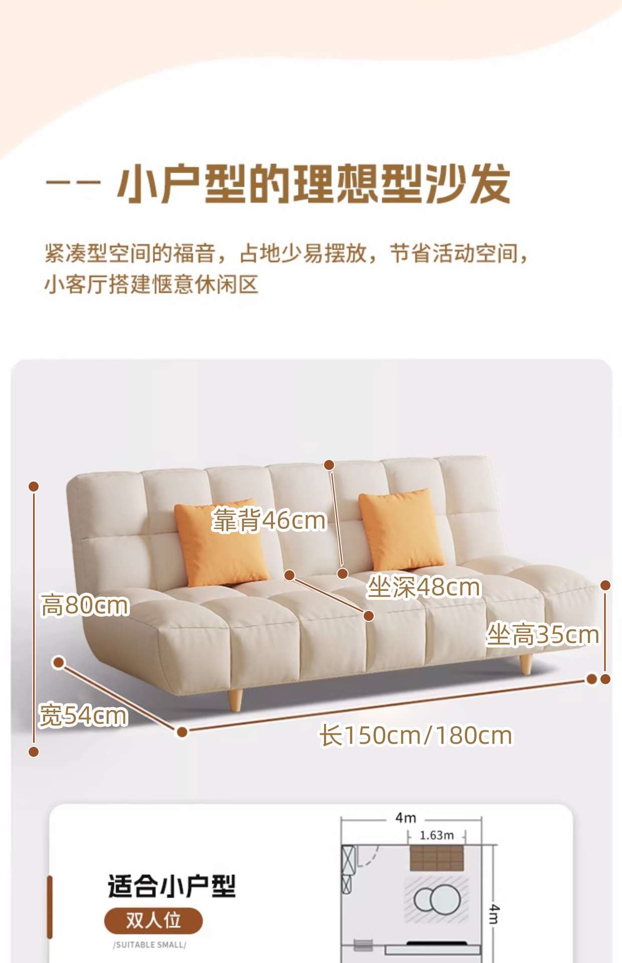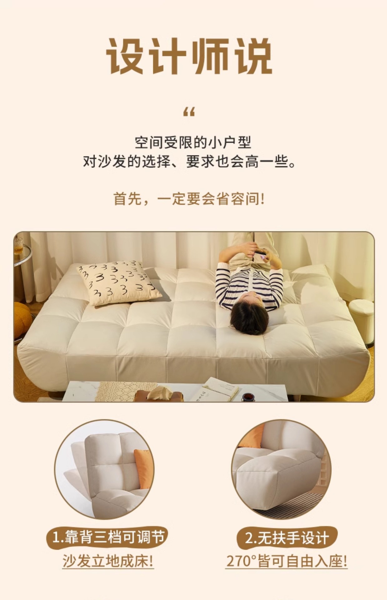 소파 크림 스타일 접이식 겸용 소파베드 테크놀로지 패브릭 침실 거실 소형 아파트 다기능 접이식