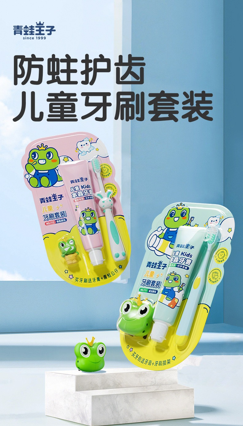 개구리 왕자 어린이 치약 정품 도매 3-12 세 칫솔 부드러운 강모 고급 칫솔 슈퍼마켓 3 피스 칫솔 세트