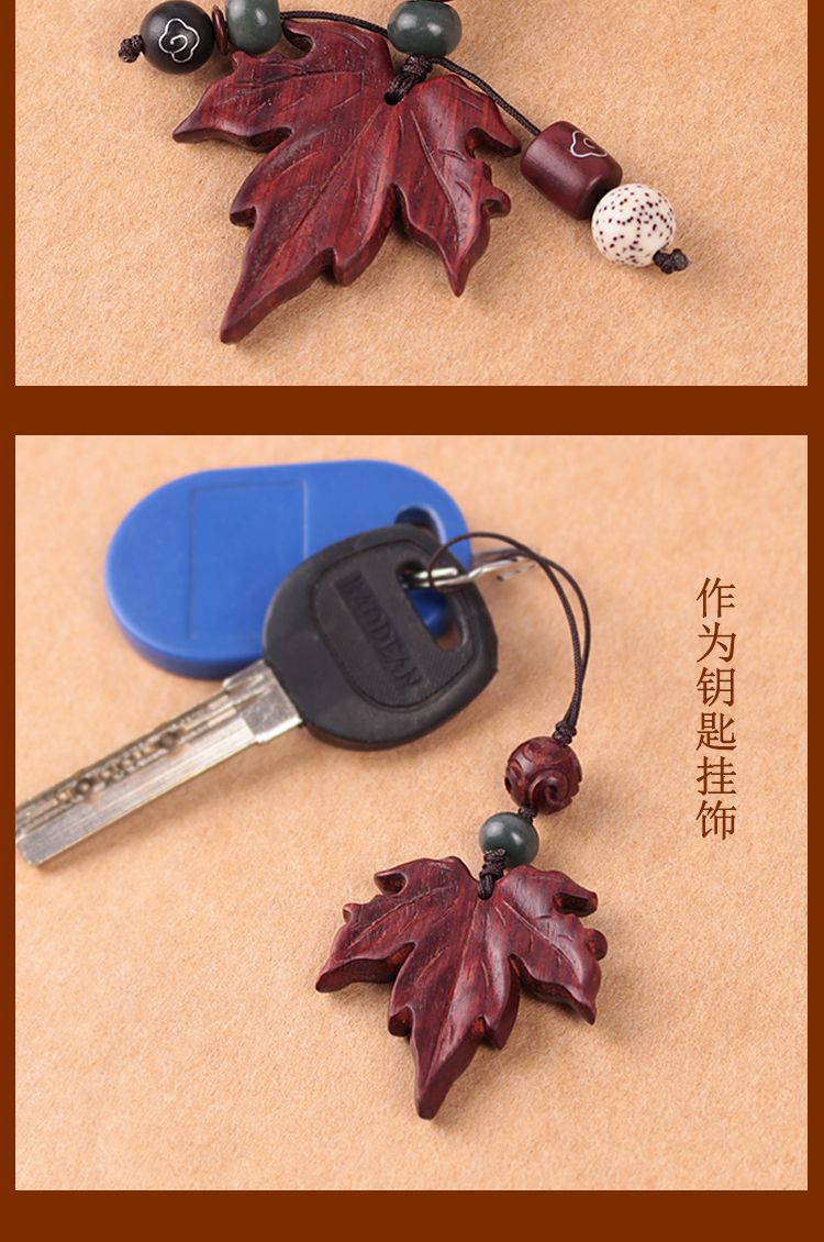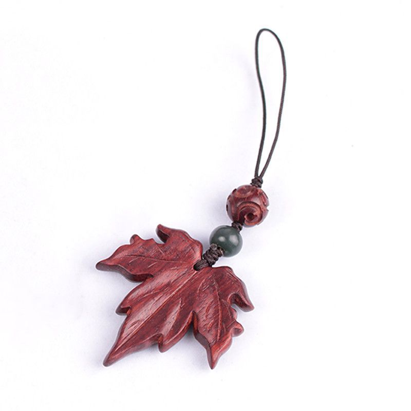 펜던트 골동품 스타일 한 잎 가을 로즈우드 단풍잎 가방 펜던트 휴대폰 체인 키체인