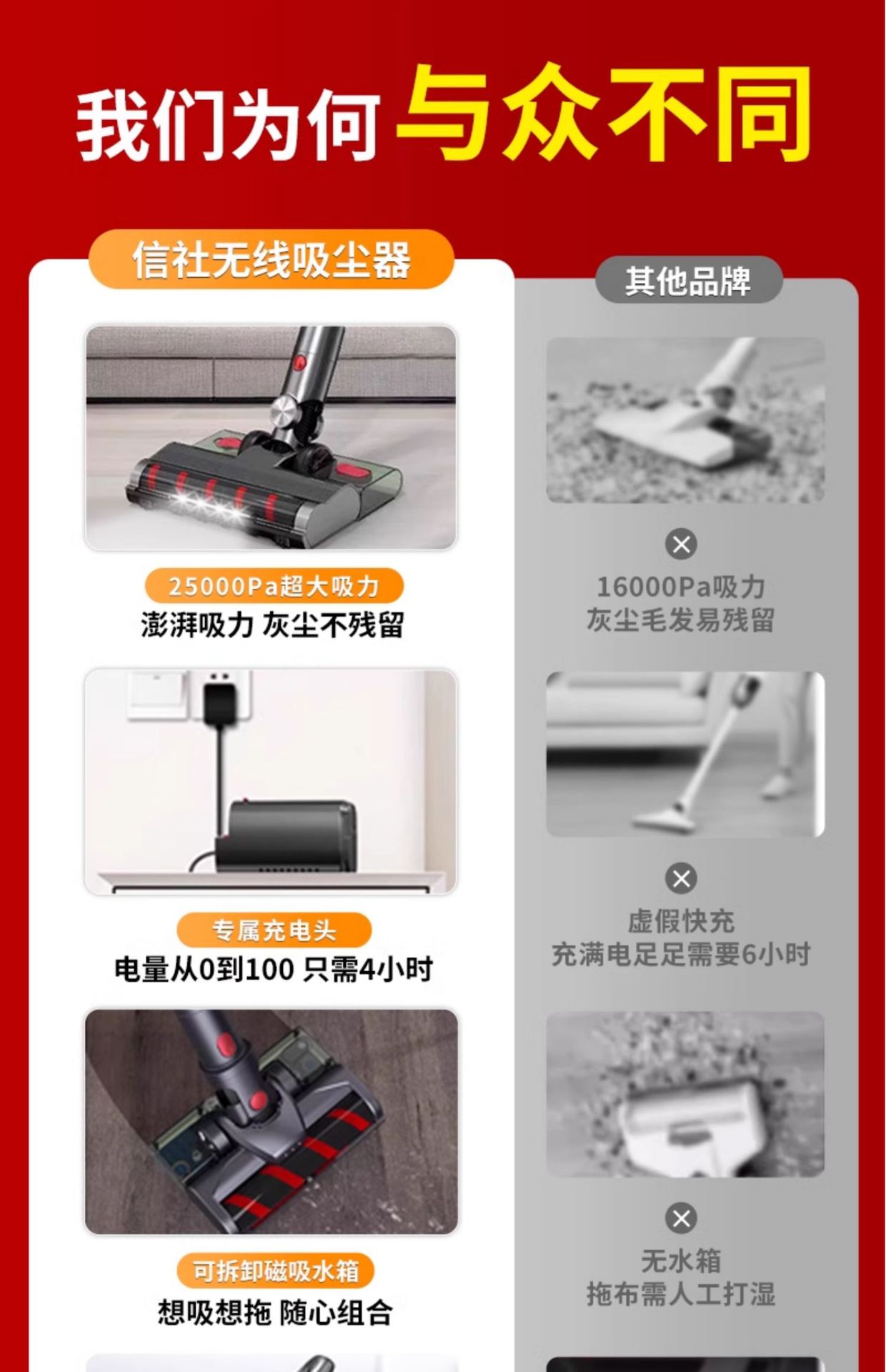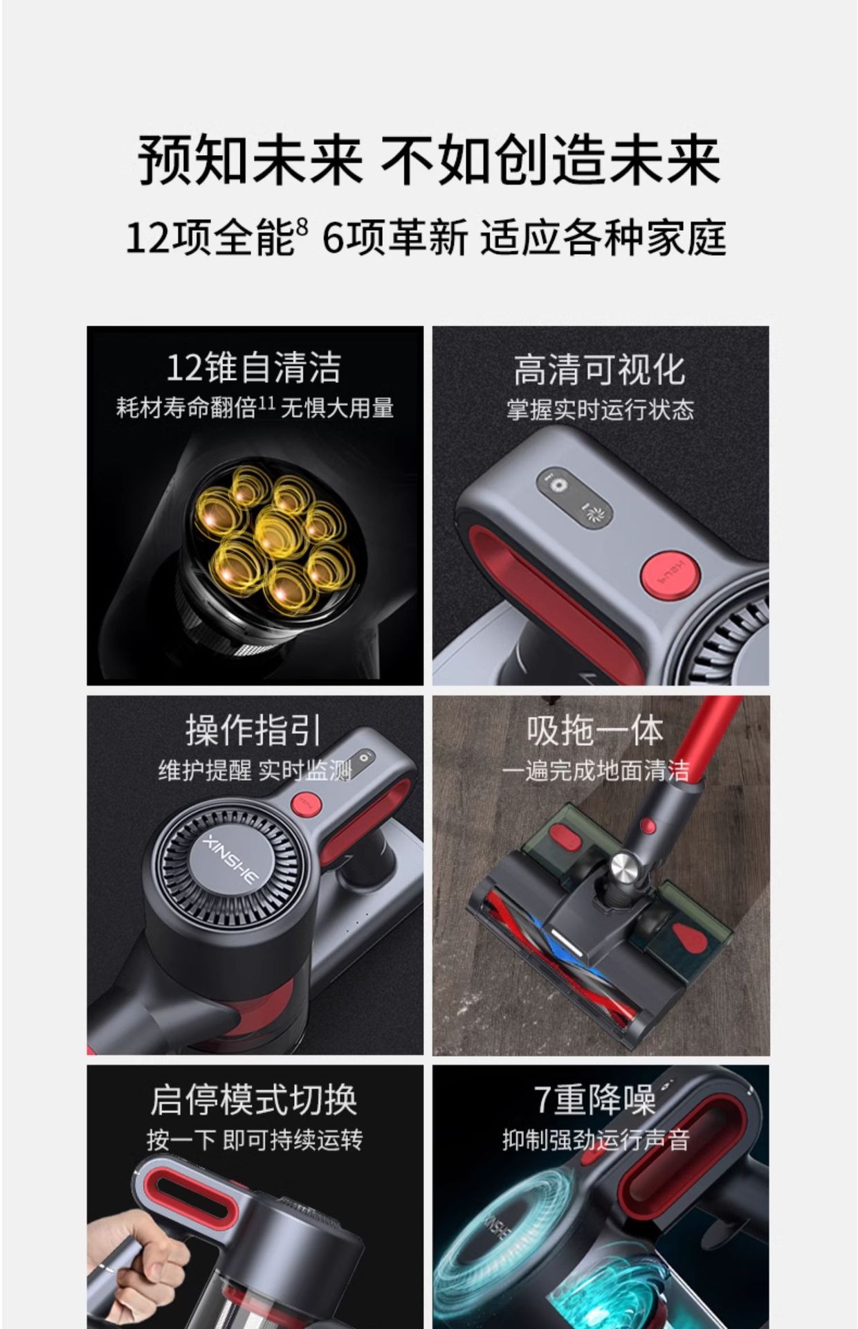 Xinshe 무선 진공 청소기 가정용 대형 흡입 강력한 휴대용 소형 경량 고양이 털 청소 올인원 진드기 제거제스토어 가기
