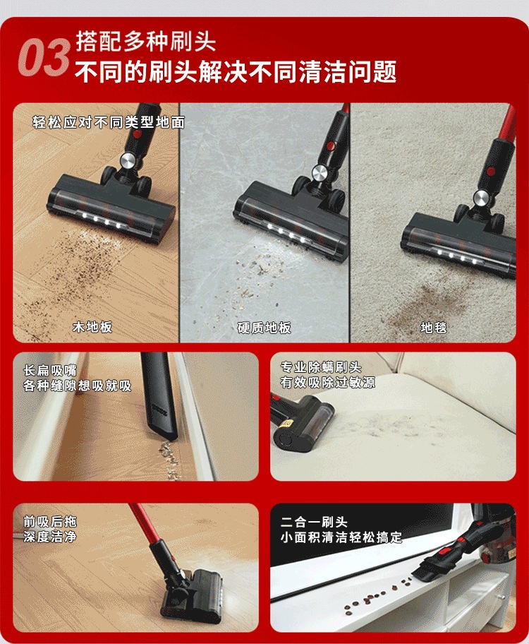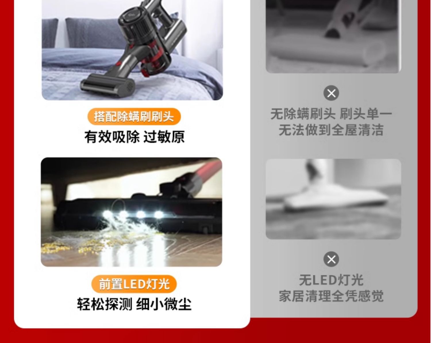 • 플래그십 강화 버전 [브러시리스 모터] + 물걸레 물탱크 + 전기 진드기 제거 브러시