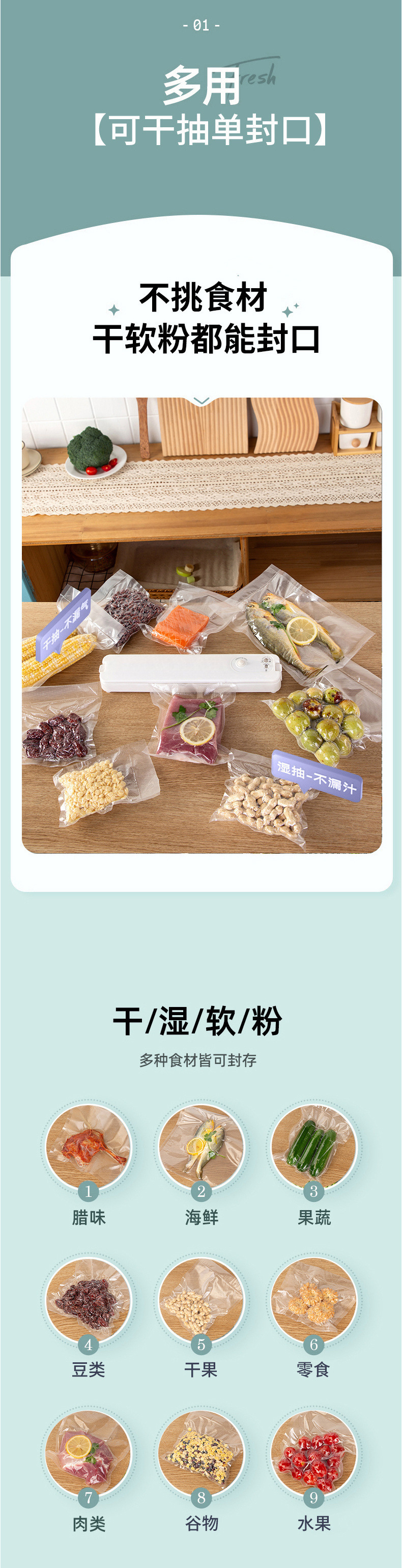 진공 밀봉 기계, 소형 가정용 식품 포장 기계, 상업용 압축 백 플라스틱 밀봉 및 신선 유지, 완전 자동 밀봉스토어 가기