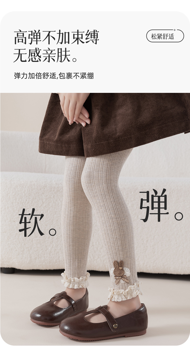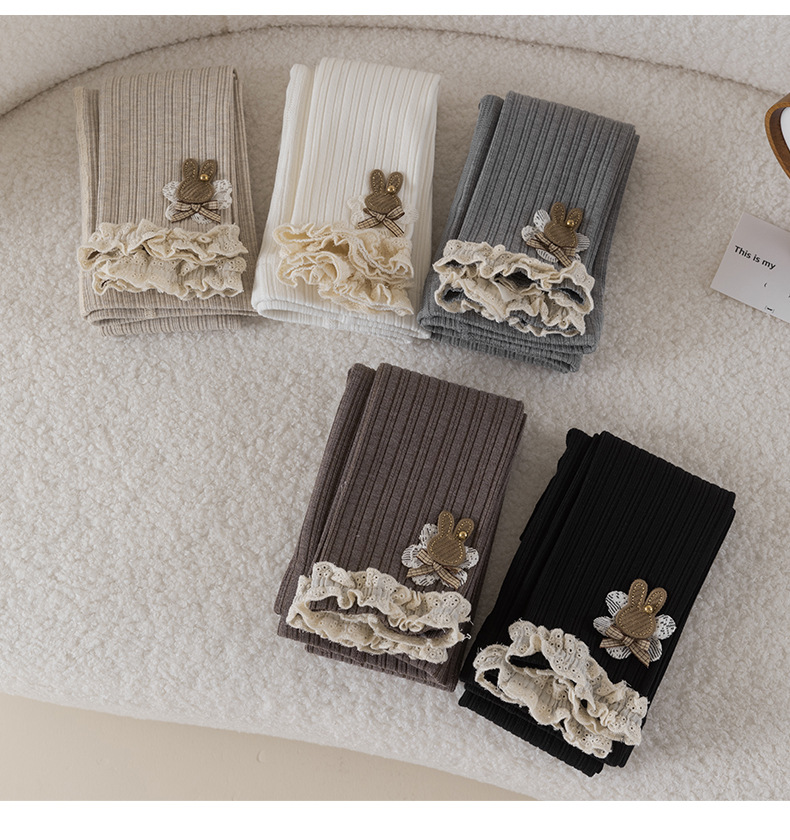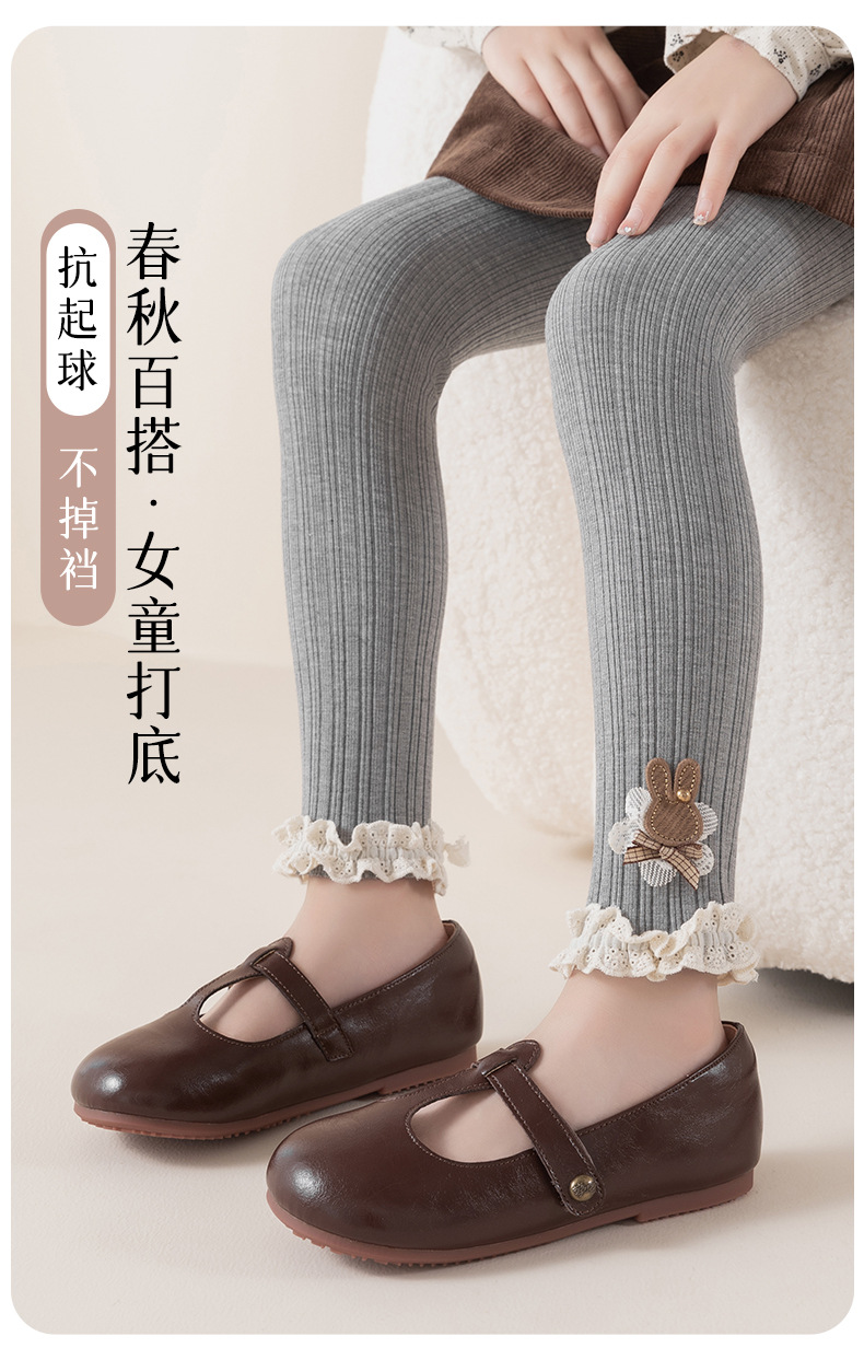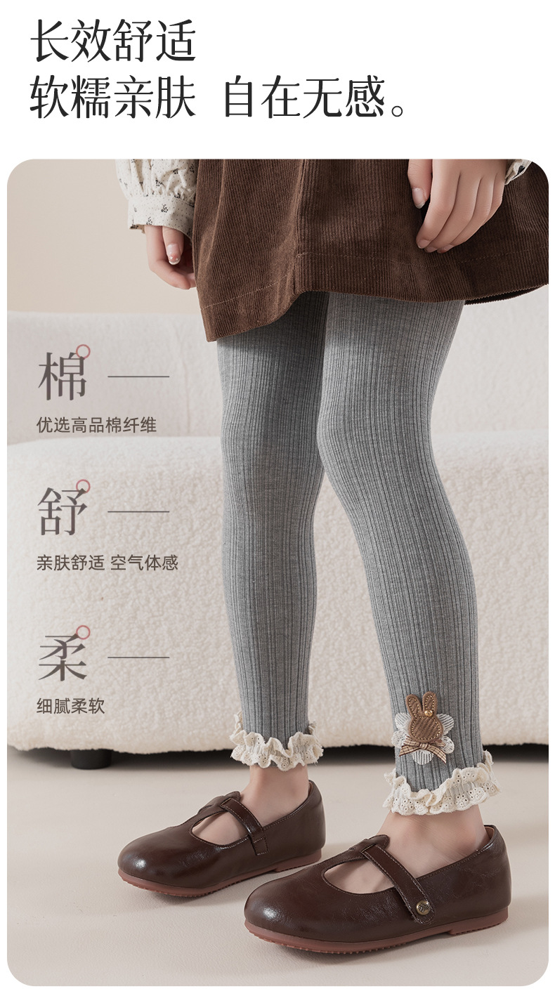 레이스 토끼 자수 여아 레깅스 봄, 가을 겉옷 아동용 긴 바지 피부 친화적인 순면 9부 바지스토어 가기