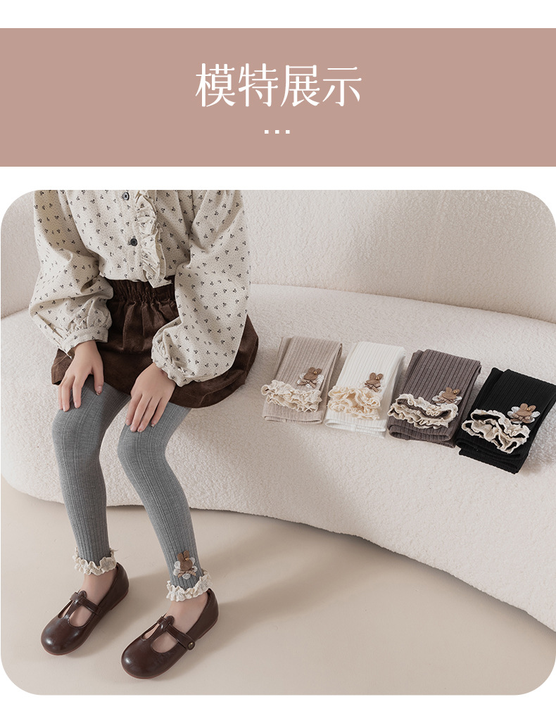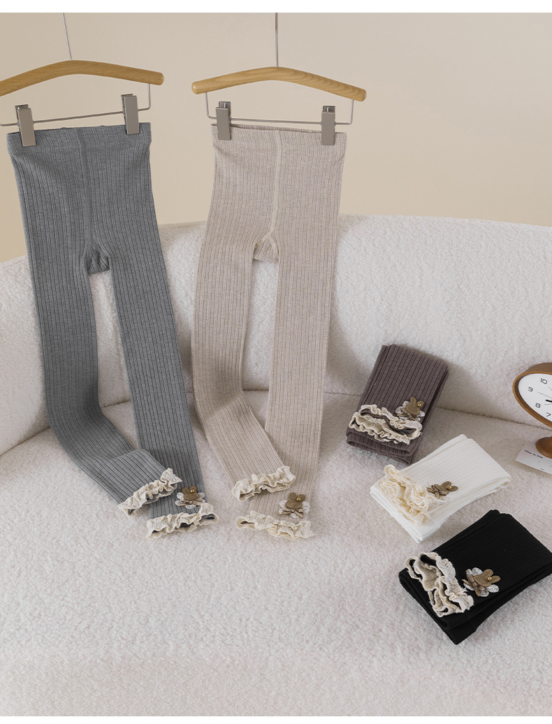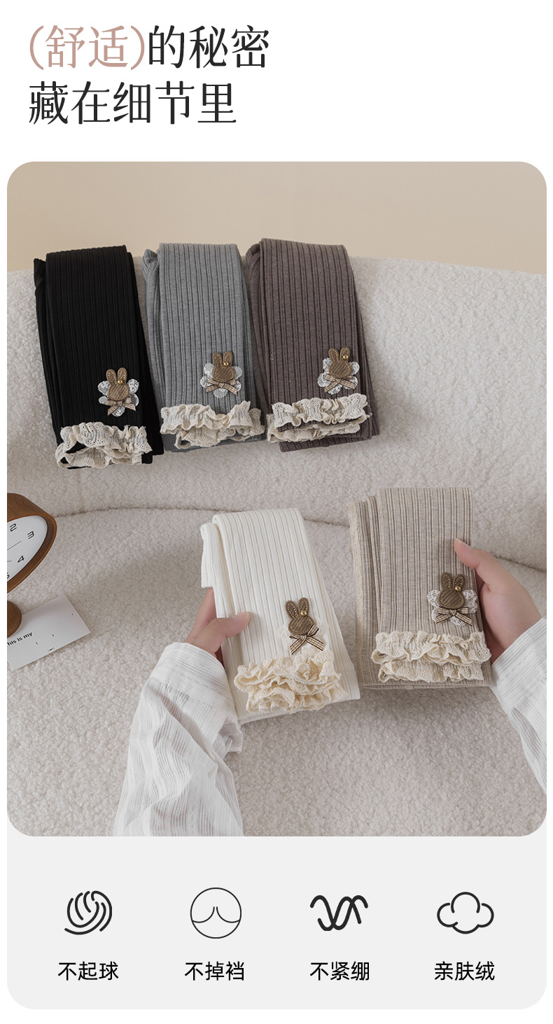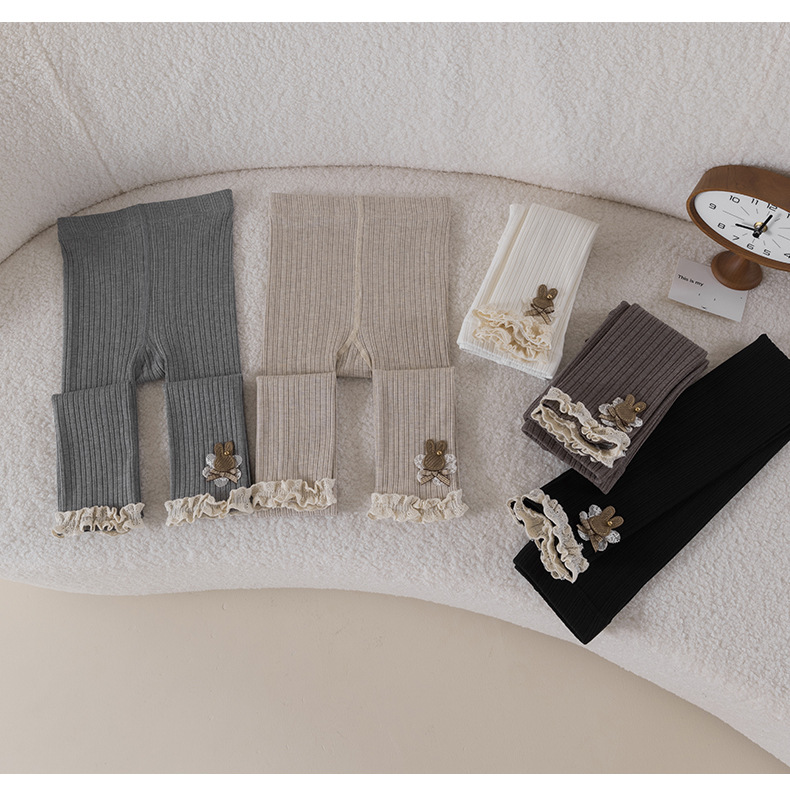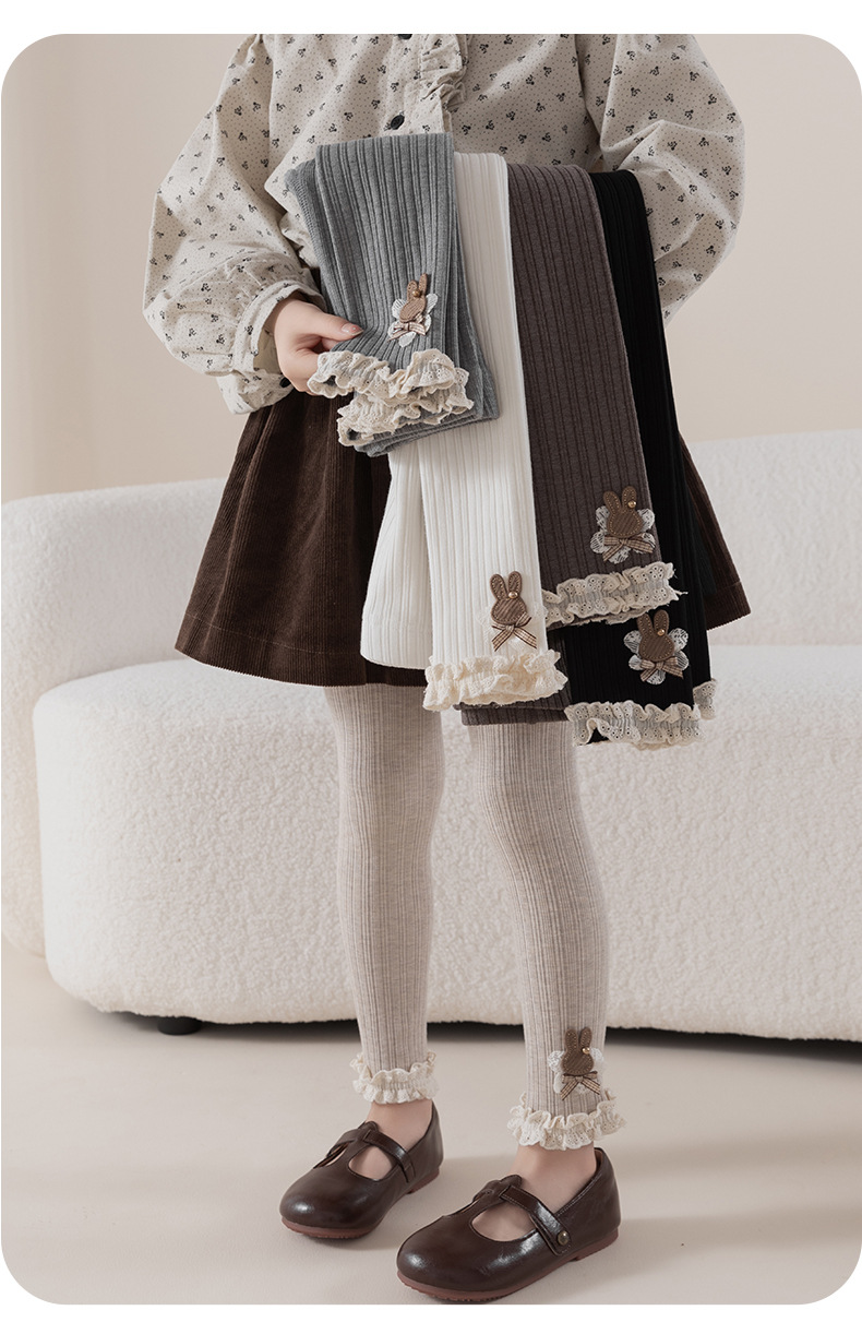 레이스 토끼 자수 여아 레깅스 봄, 가을 겉옷 아동용 긴 바지 피부 친화적인 순면 9부 바지스토어 가기
