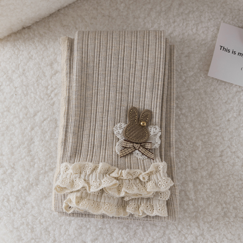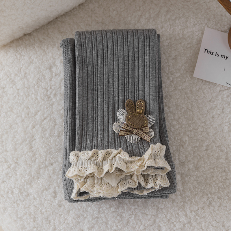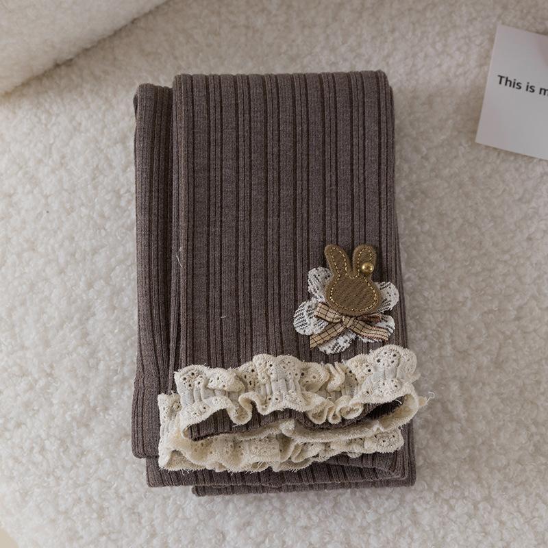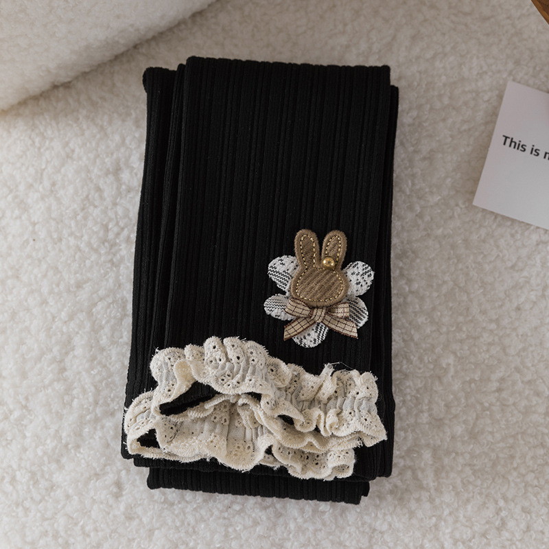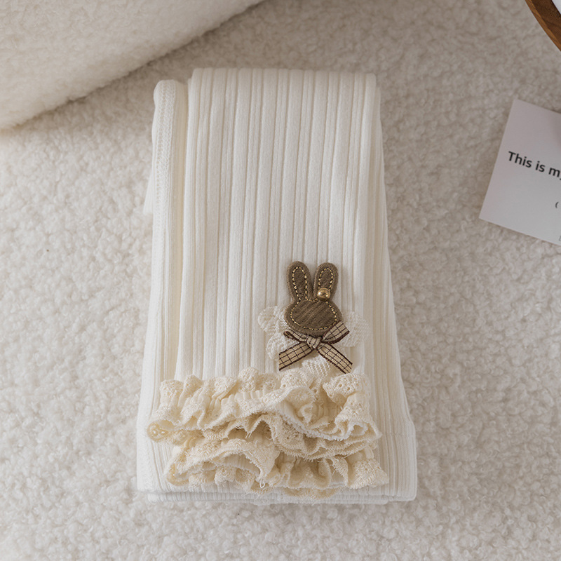 레이스 토끼 자수 여아 레깅스 봄, 가을 겉옷 아동용 긴 바지 피부 친화적인 순면 9부 바지