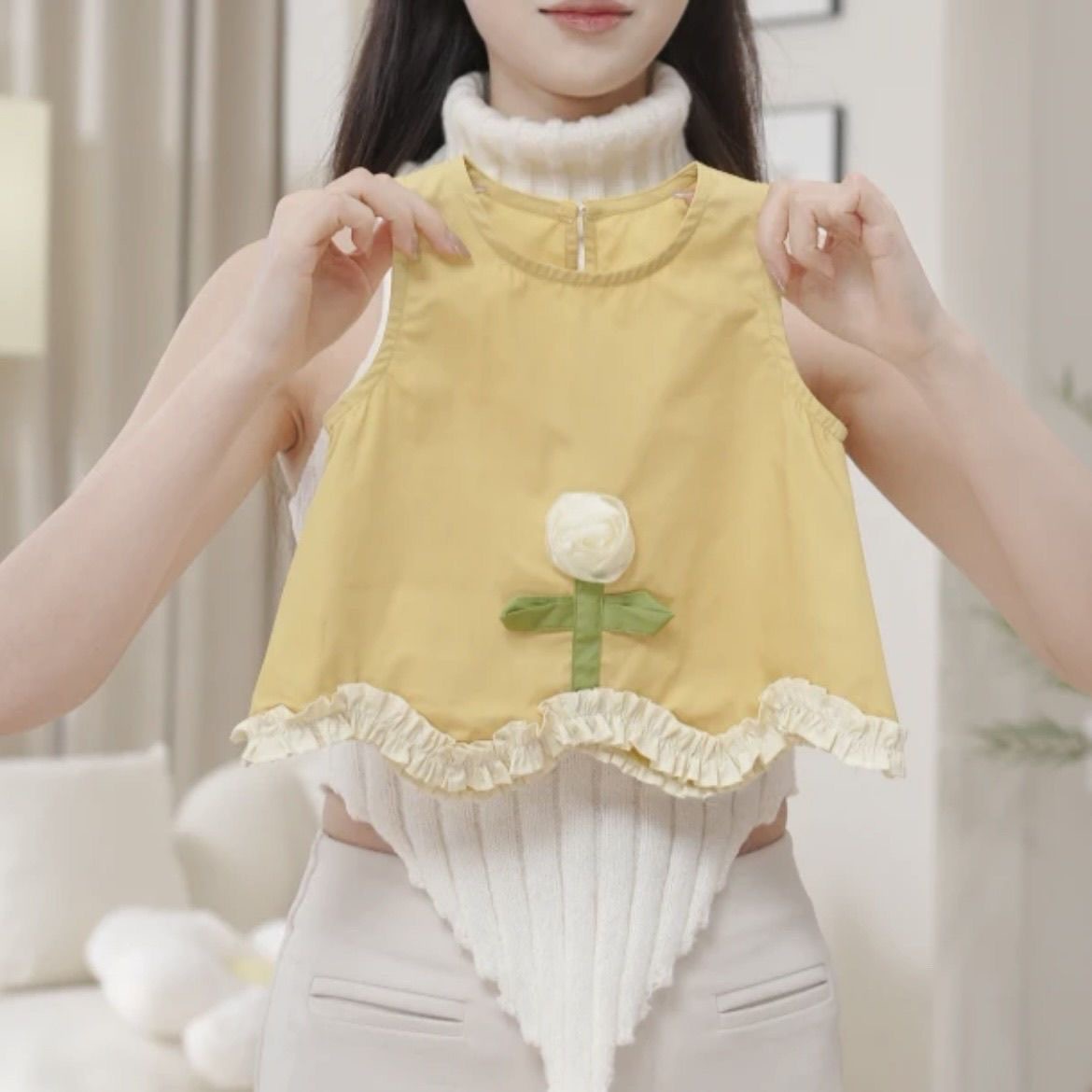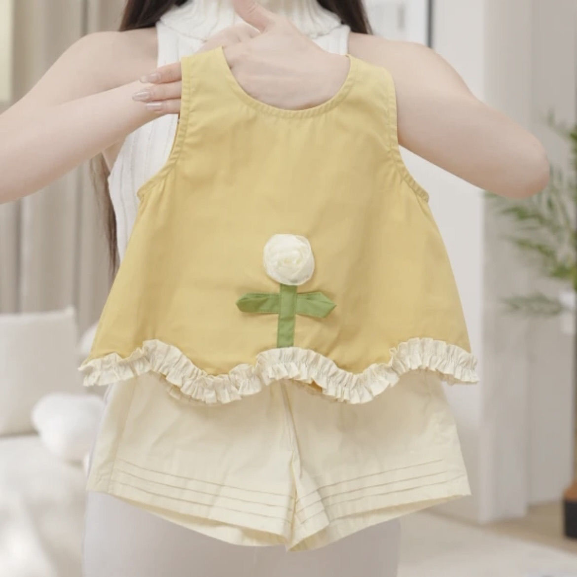 여자 정장 여름 새로운 곰팡이 레이스 탑 반바지 입체 옷 해바라기 투피스 세트