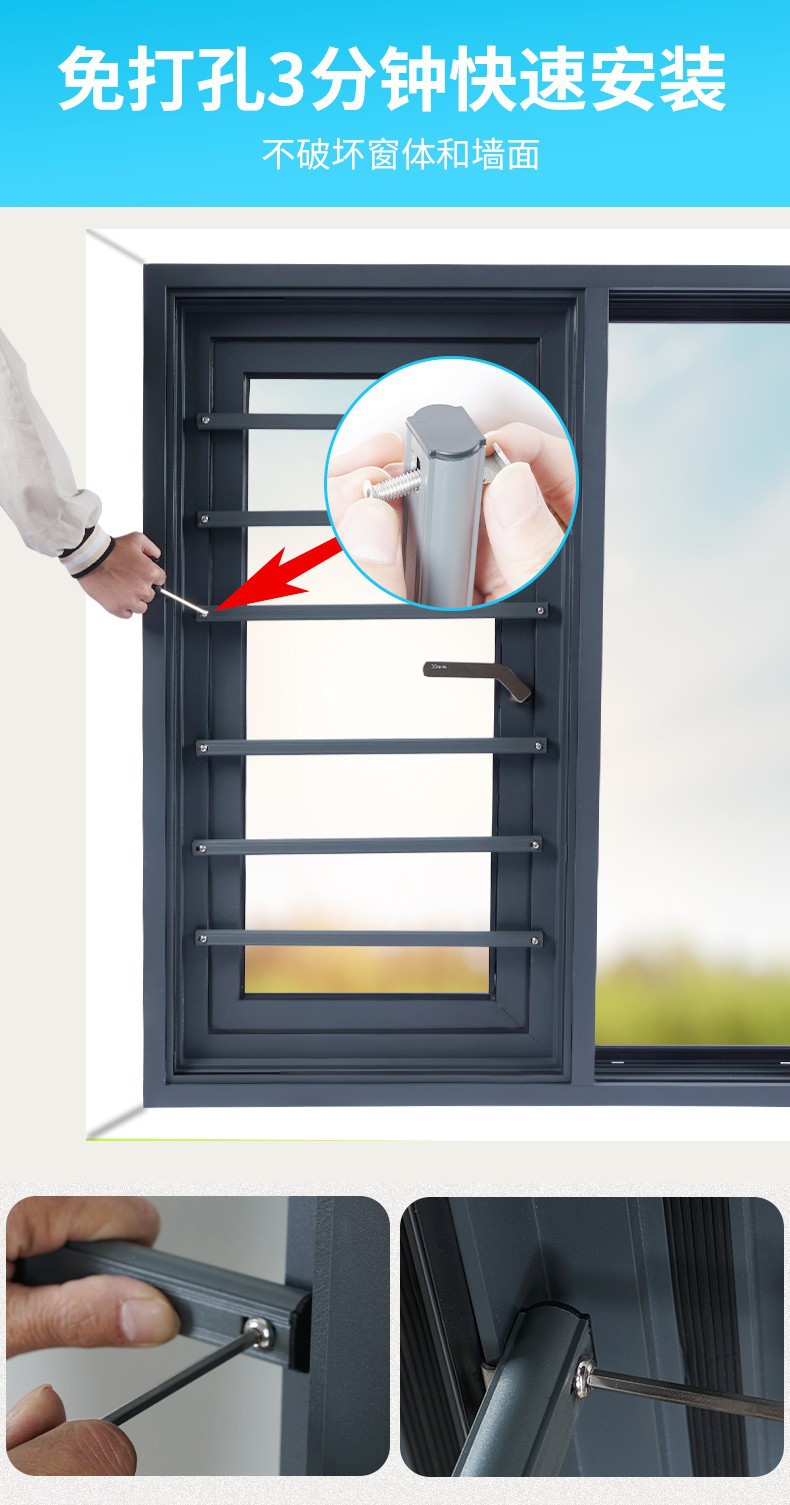 안전한 어린이 보이지 않는 도난 방지 창 발코니 창 가드 레일 펀치 홈 자체 설치 메쉬 벌크헤드 창 난간 무료 실내