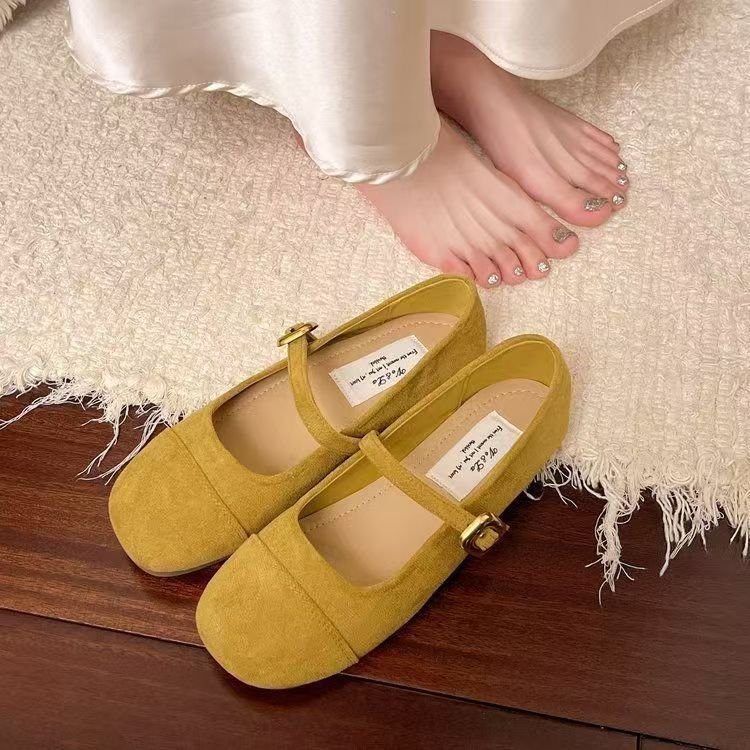 여성을위한 프랑스 스웨이드 메리 제인 신발 2025 여름 새로운 스타일 복고풍 부드러운 바닥 스커트 라운드 발가락 플랫 슬립 온 신발스토어 가기
