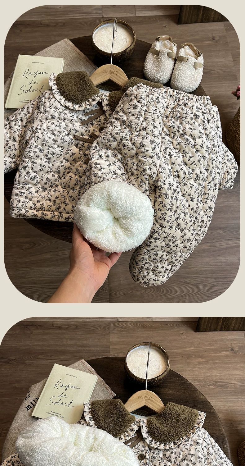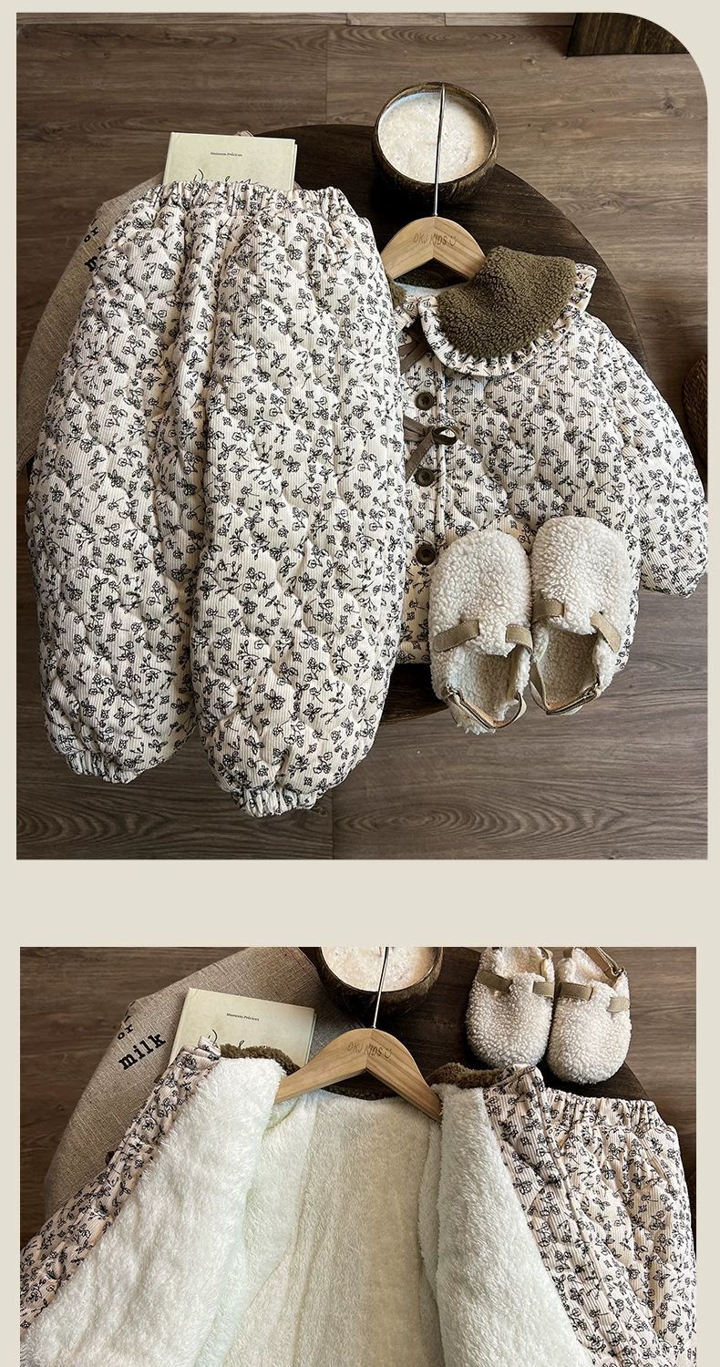 여아 잠옷, 겨울 벨벳 및 두꺼운 아동복, 겨울 여아 면복, 여아용 따뜻한 옷