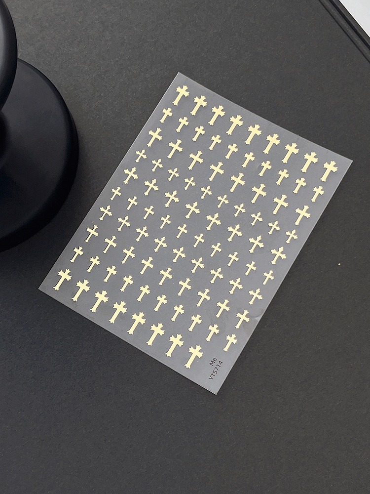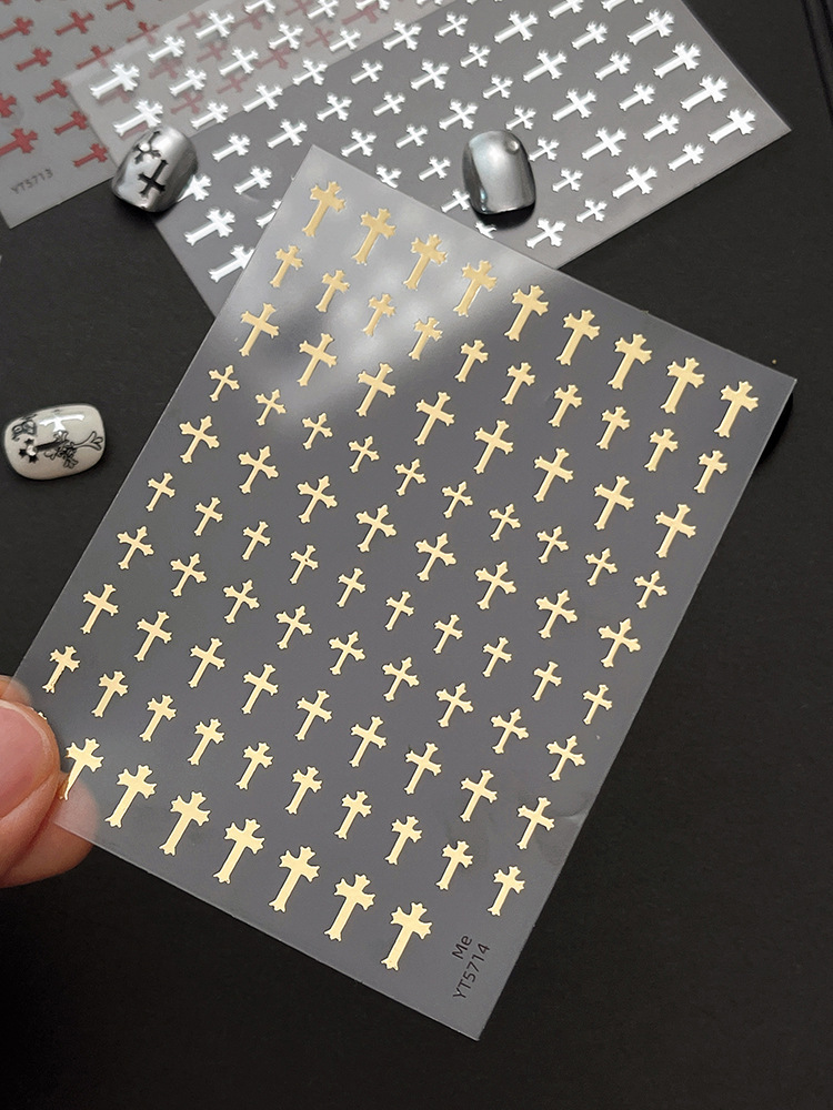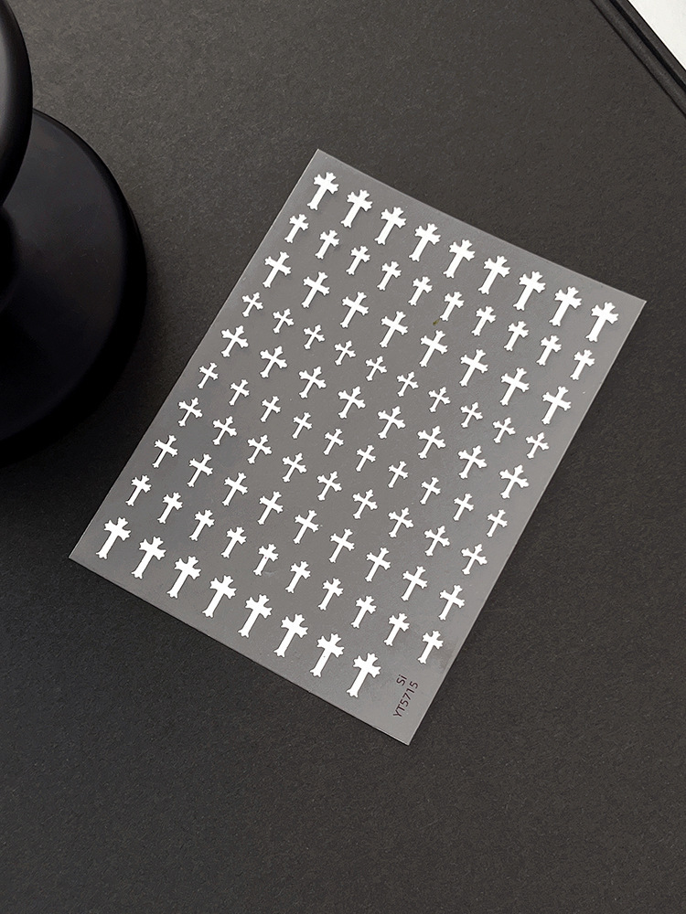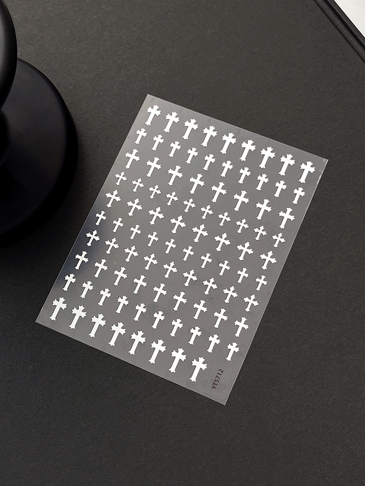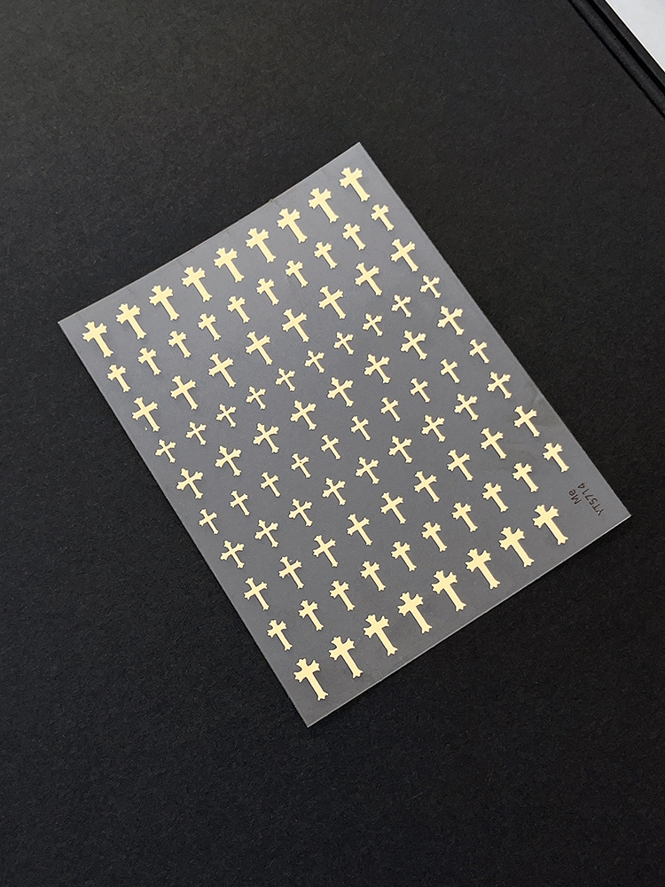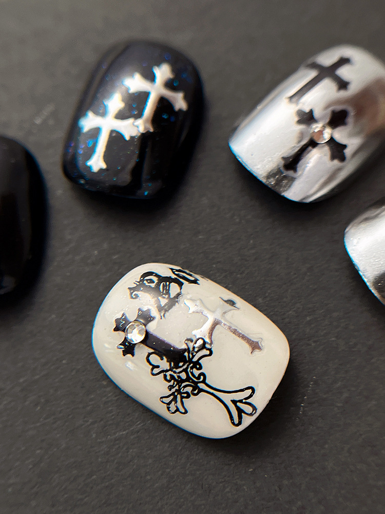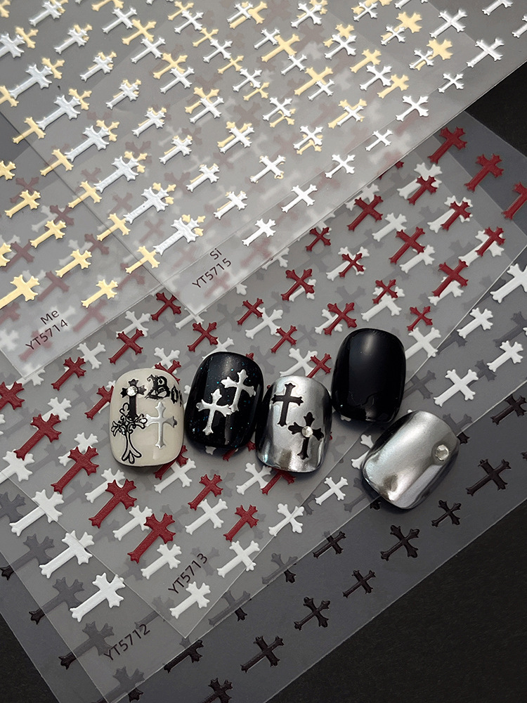 양각 크로스 네일 아트 스티커 2025 새로운 복고풍 고딕 다크 스타일 접착 네일 데칼 장식 도매스토어 가기