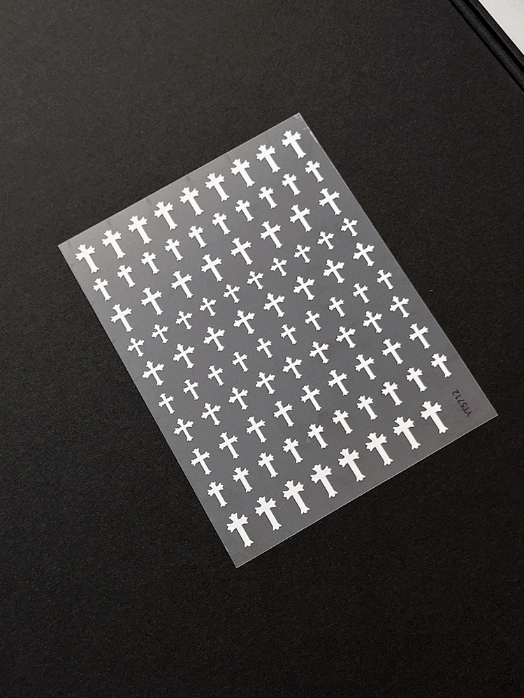양각 크로스 네일 아트 스티커 2025 새로운 복고풍 고딕 다크 스타일 접착 네일 데칼 장식 도매