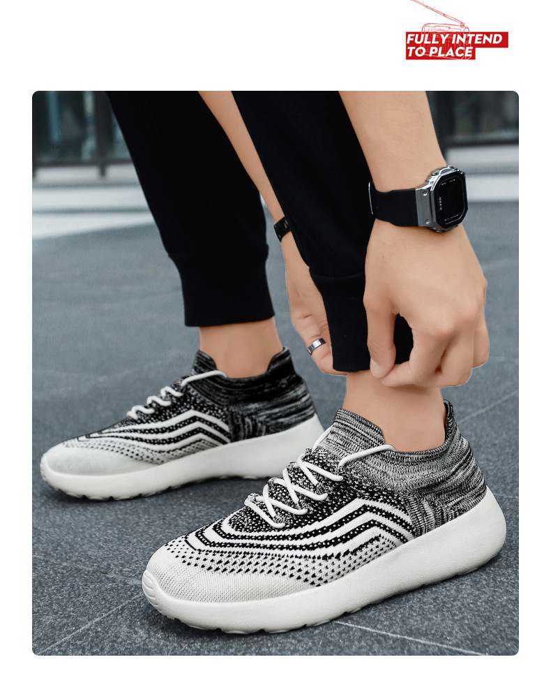 커플 플라이 짠 메쉬 캐주얼 스포츠 신발 레이스 업 남성용 대형 크로스 보더 35-45 경량 운동화 양말 신발스토어 가기