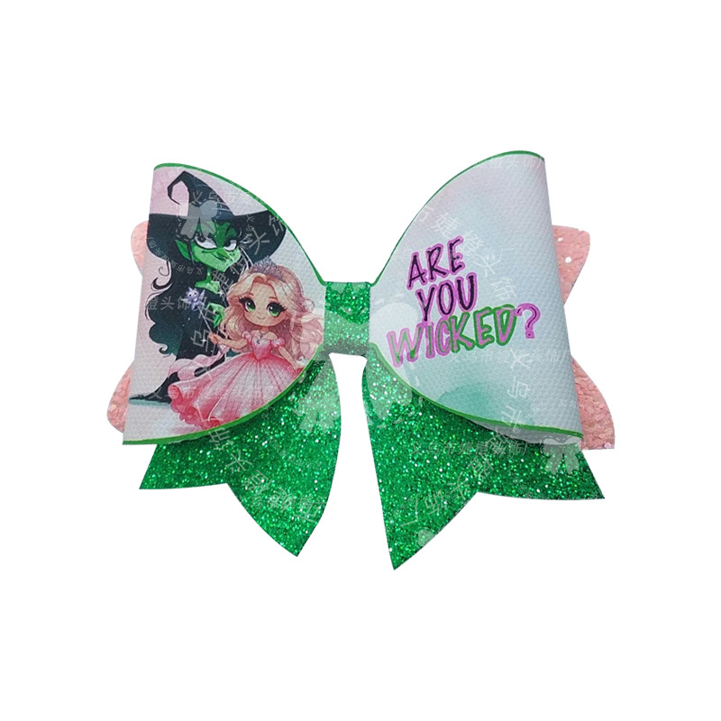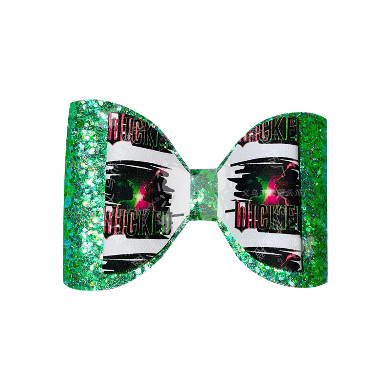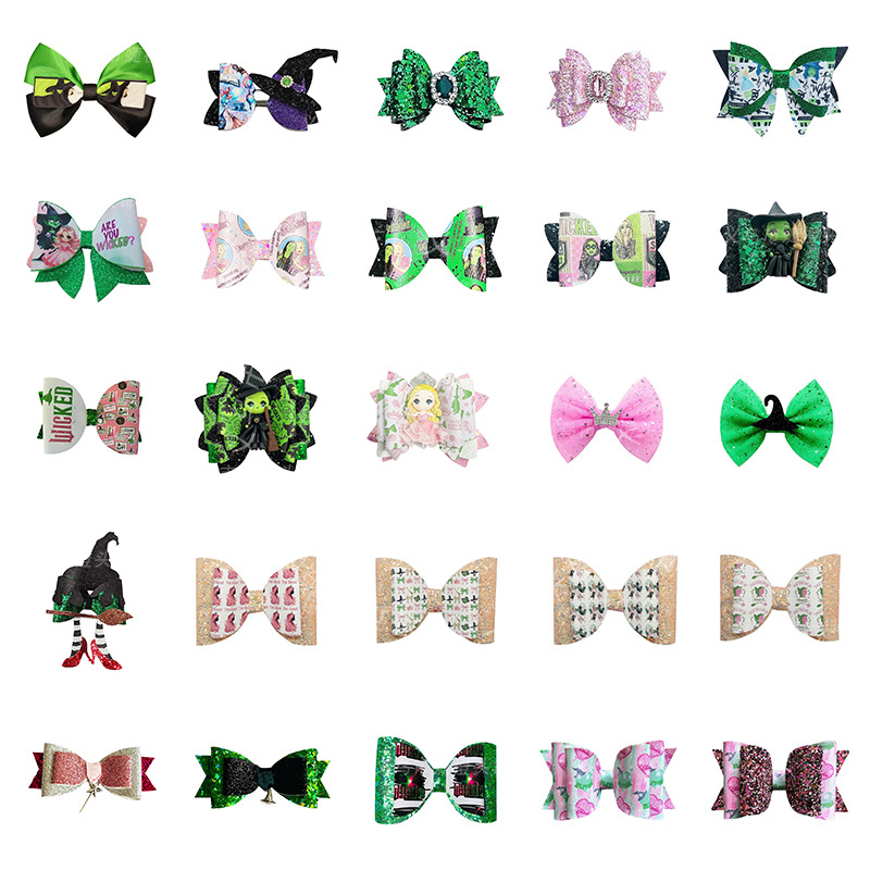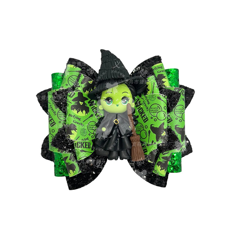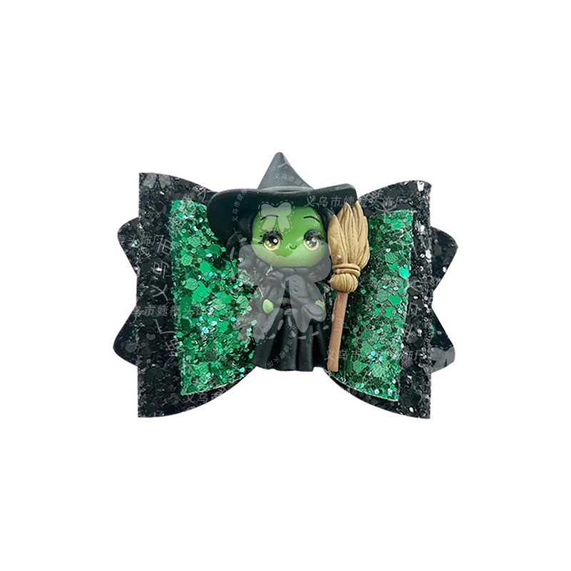 국경을 넘는 마법의 사악한 마녀 머리핀 핑크 그린 리본 헤어 액세서리 스팽글 글리터 사이드 클립 유럽과 미국 어린이 앞머리 클립
