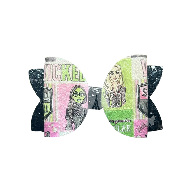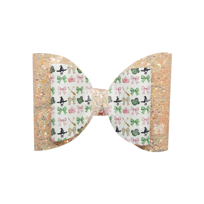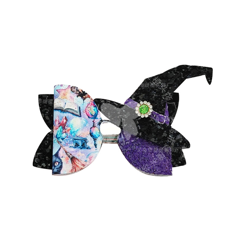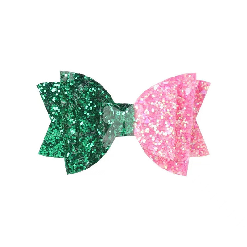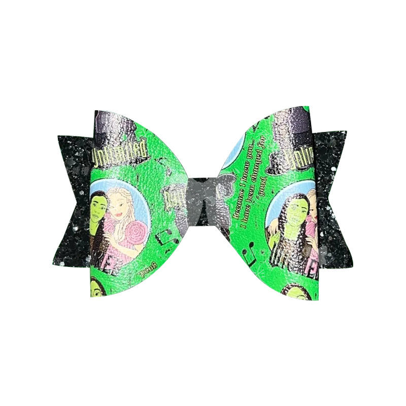 국경을 넘는 마법의 사악한 마녀 머리핀 핑크 그린 리본 헤어 액세서리 스팽글 글리터 사이드 클립 유럽과 미국 어린이 앞머리 클립