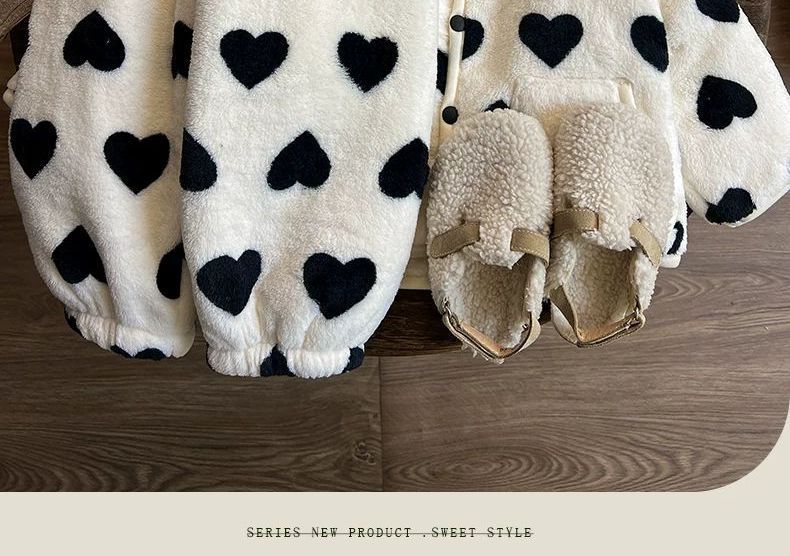 아동용 잠옷, 겨울 벨벳 및 두꺼운 여아 가정복, 가을 겨울 여아 산호 벨벳 양복, 따뜻한 옷스토어 가기