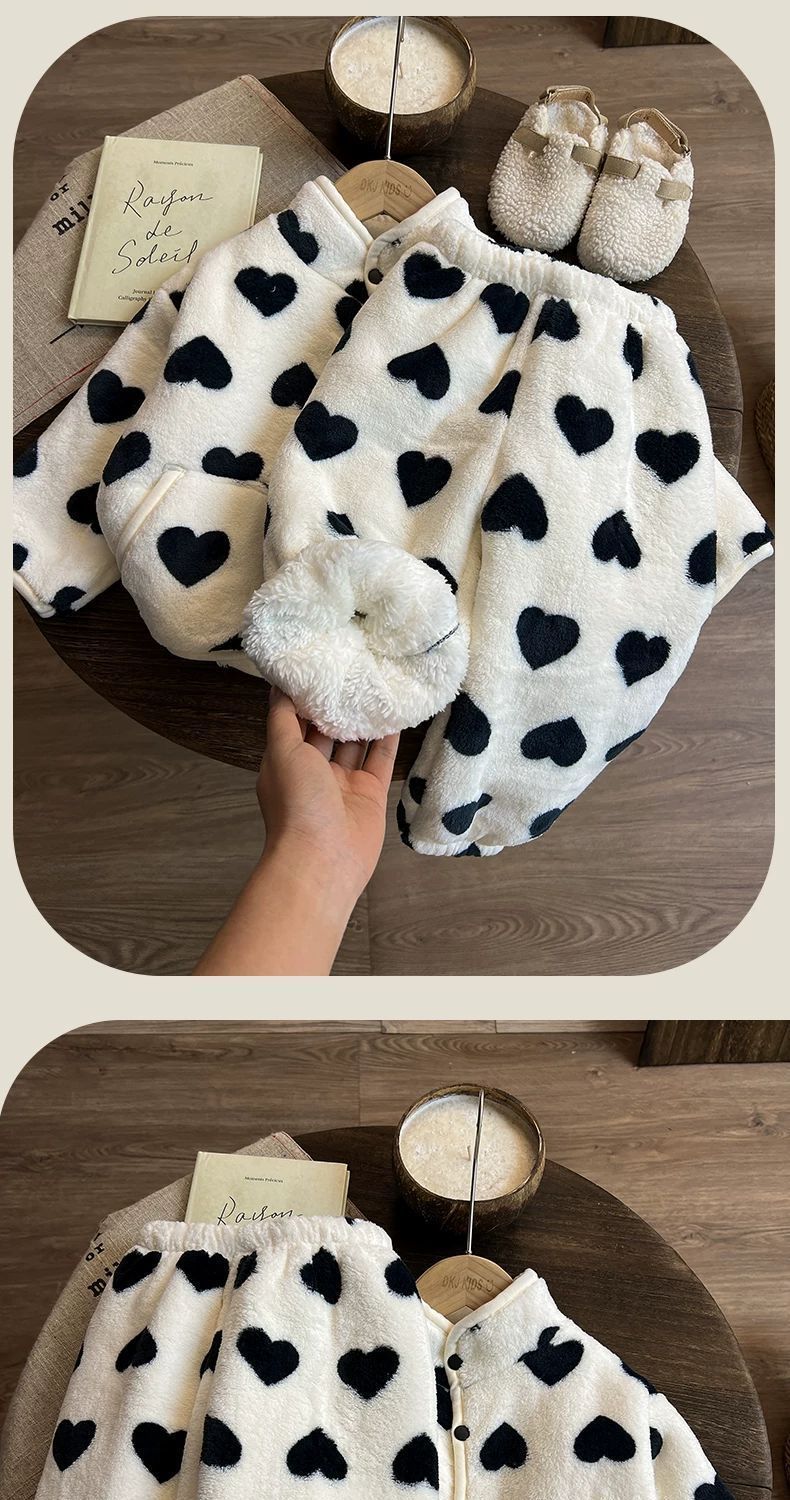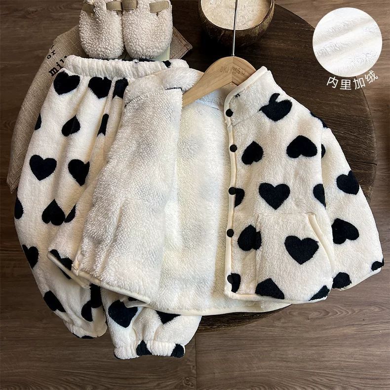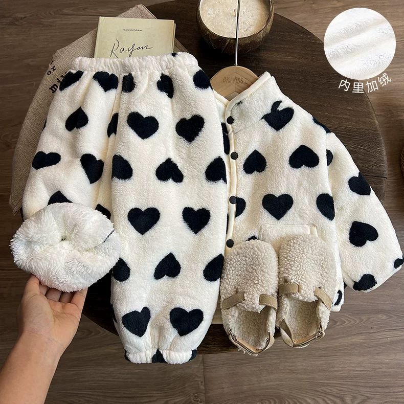 아동용 잠옷, 겨울 벨벳 및 두꺼운 여아 가정복, 가을 겨울 여아 산호 벨벳 양복, 따뜻한 옷