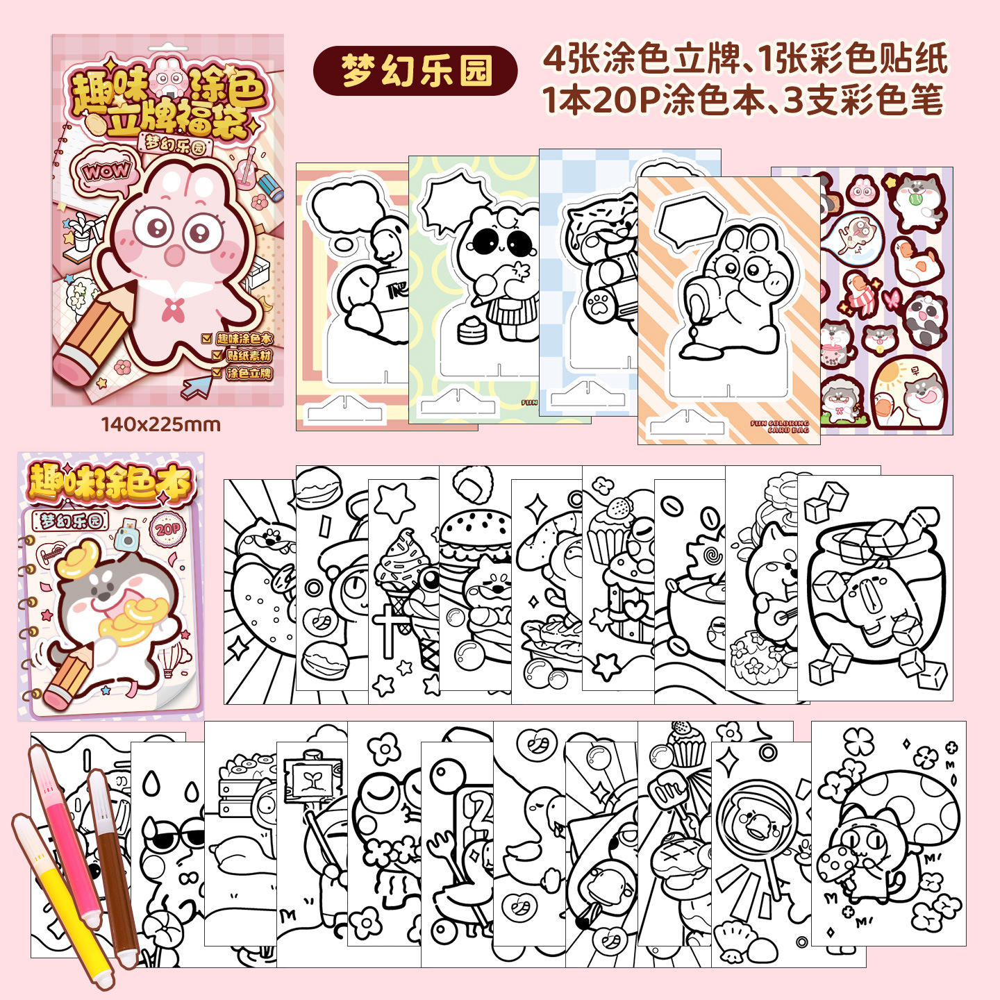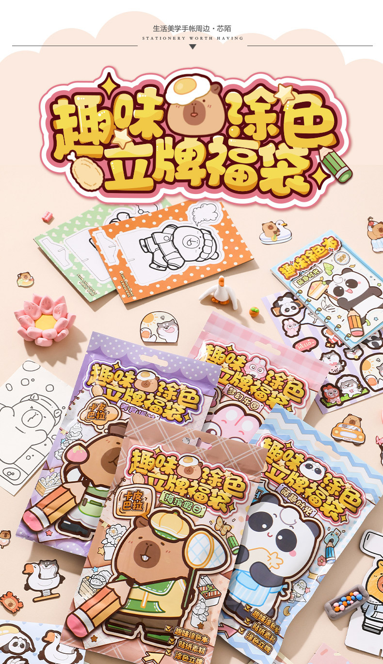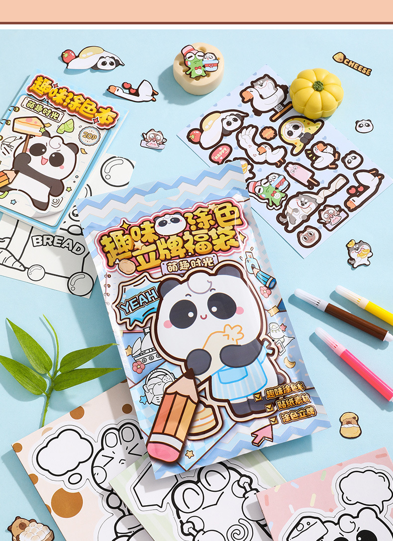 Xinmo 재미있는 색칠 스티커 스탠드 업 럭키 백 블라인드 박스 고가 어린이 수제 DIY 드레스 업 핸드북 스티커 북스토어 가기