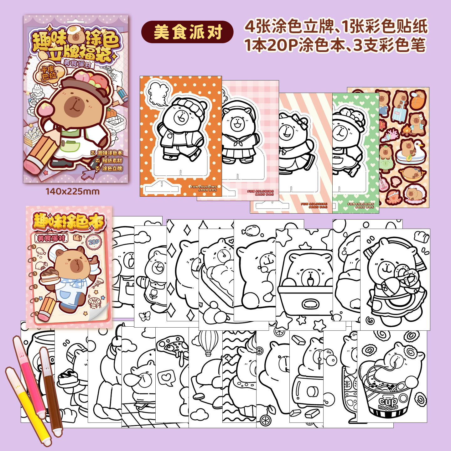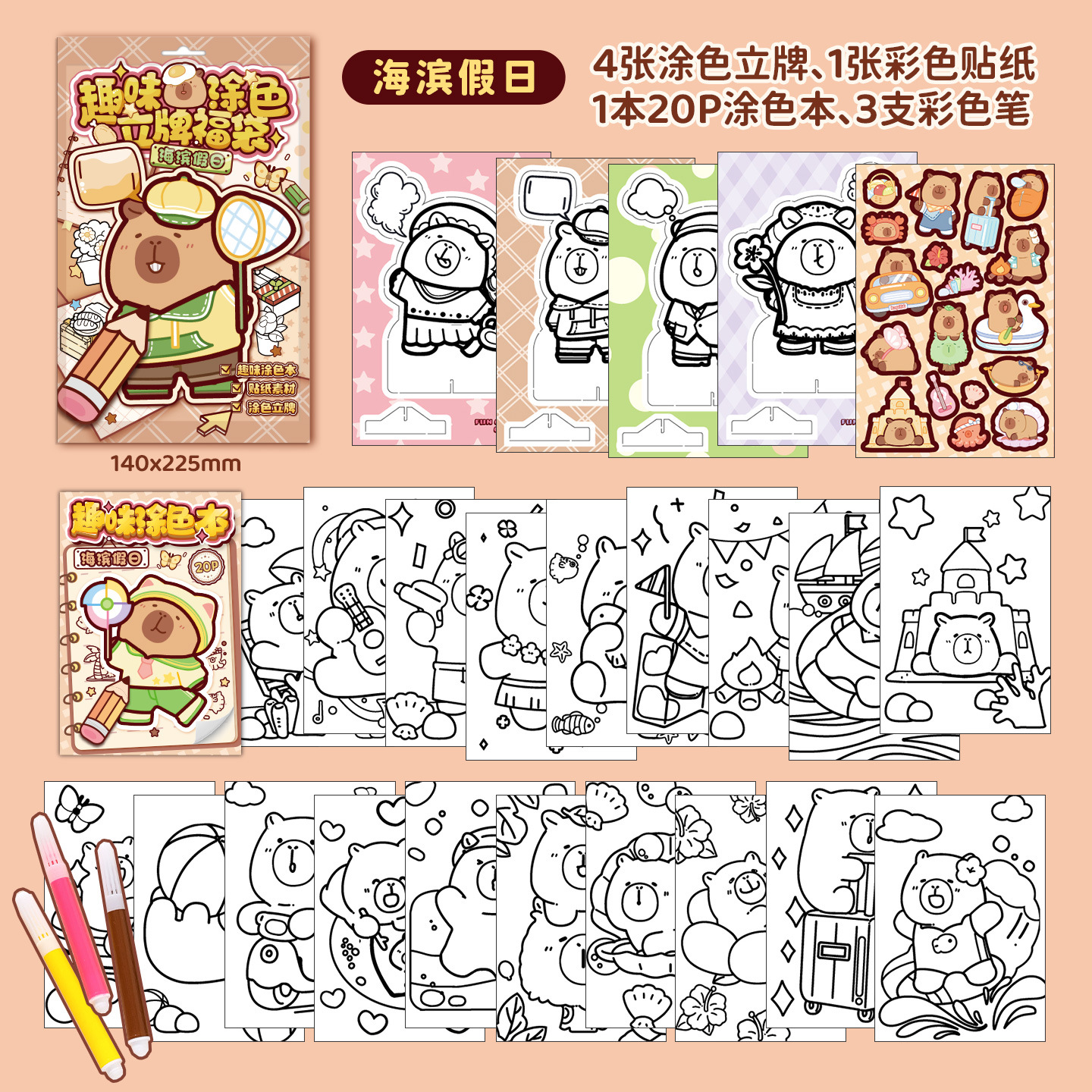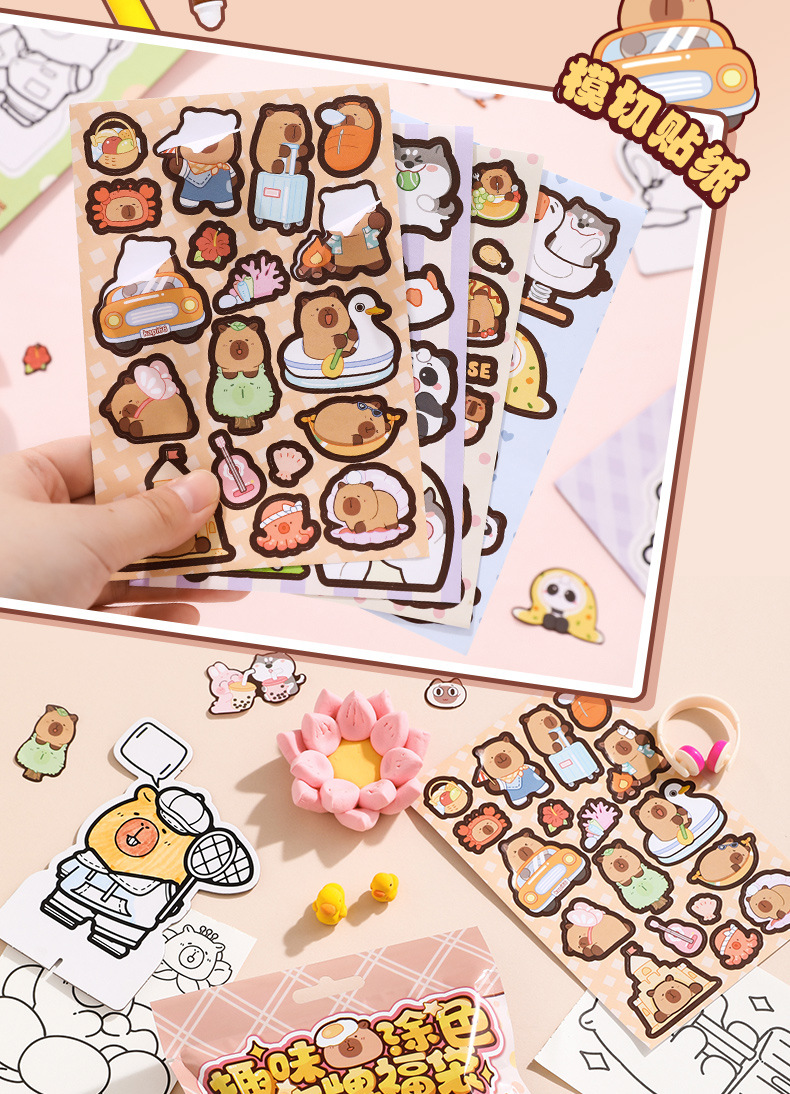 Xinmo 재미있는 색칠 스티커 스탠드 업 럭키 백 블라인드 박스 고가 어린이 수제 DIY 드레스 업 핸드북 스티커 북스토어 가기