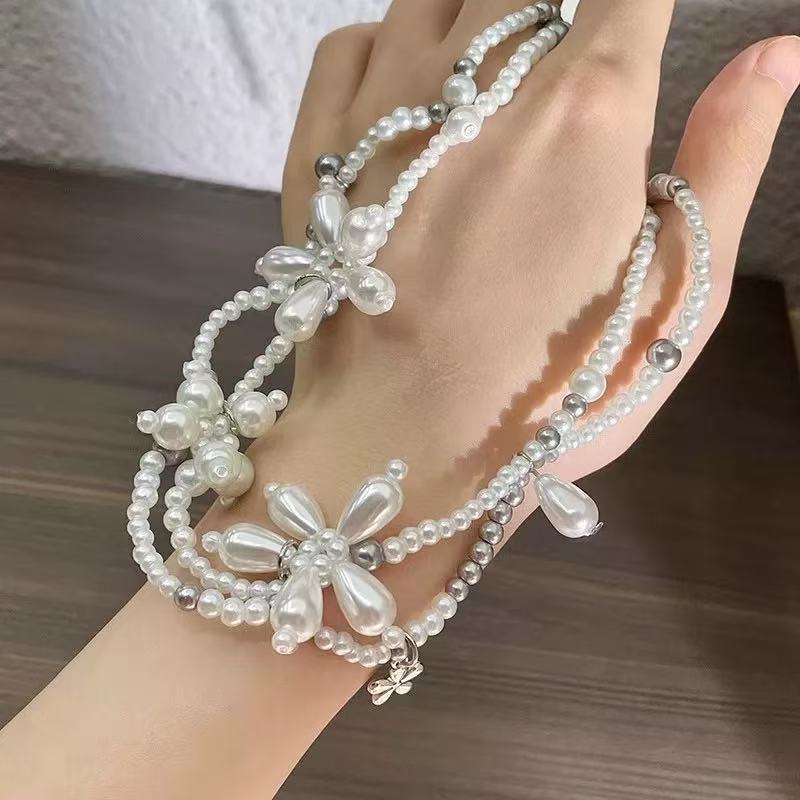 니치한 하이엔드 디자인의 입체적인 진주꽃 목걸이, 핸드메이드 비즈 꽃잎, 더블 레이어 쌓인 쇄골 체인 목걸이스토어 가기
