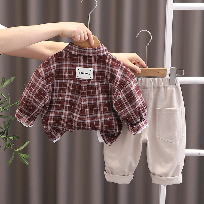 2025년 가을 신작 아동용 상의, 남아용 체크무늬 셔츠, 긴팔 3피스 세트, 남아용 멋진 긴팔 슈트스토어 가기