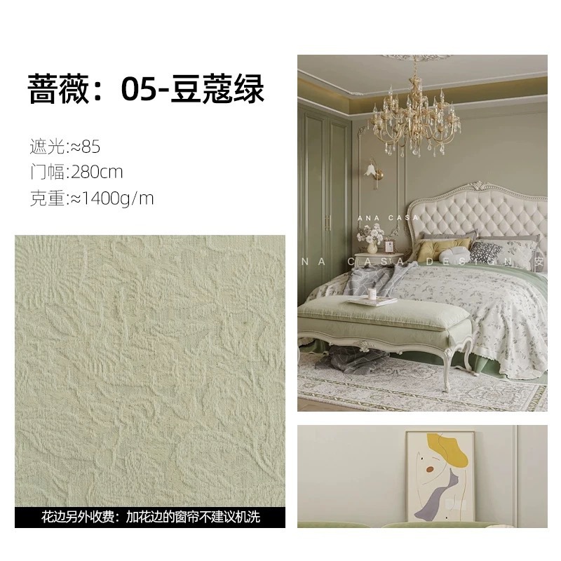 장미 커튼 프랑스 스타일 두꺼운 셔닐 커튼 원사 염색 자카드 고급 암막 커튼 빌라 침실 거실 커튼 원단스토어 가기