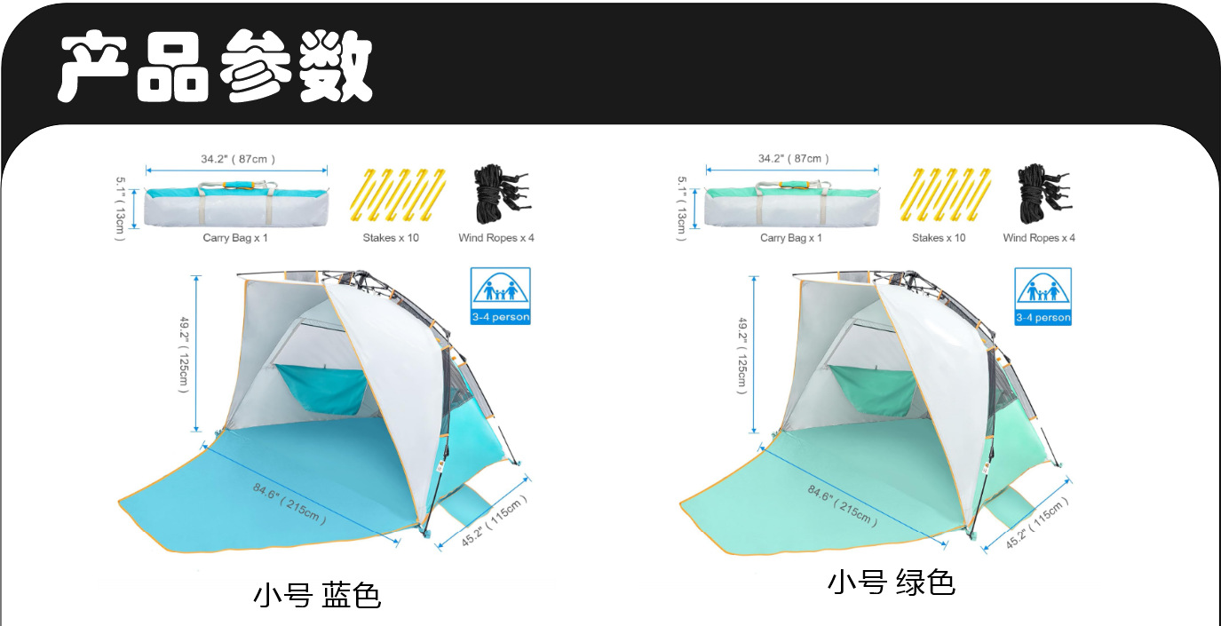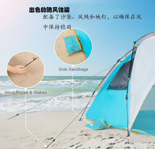 해변 텐트 재고 있음 국경 간 Amazon 인기 해변 완전 자동 빠른 개방 해변 낚시 차양 생산 공장스토어 가기