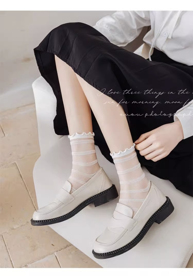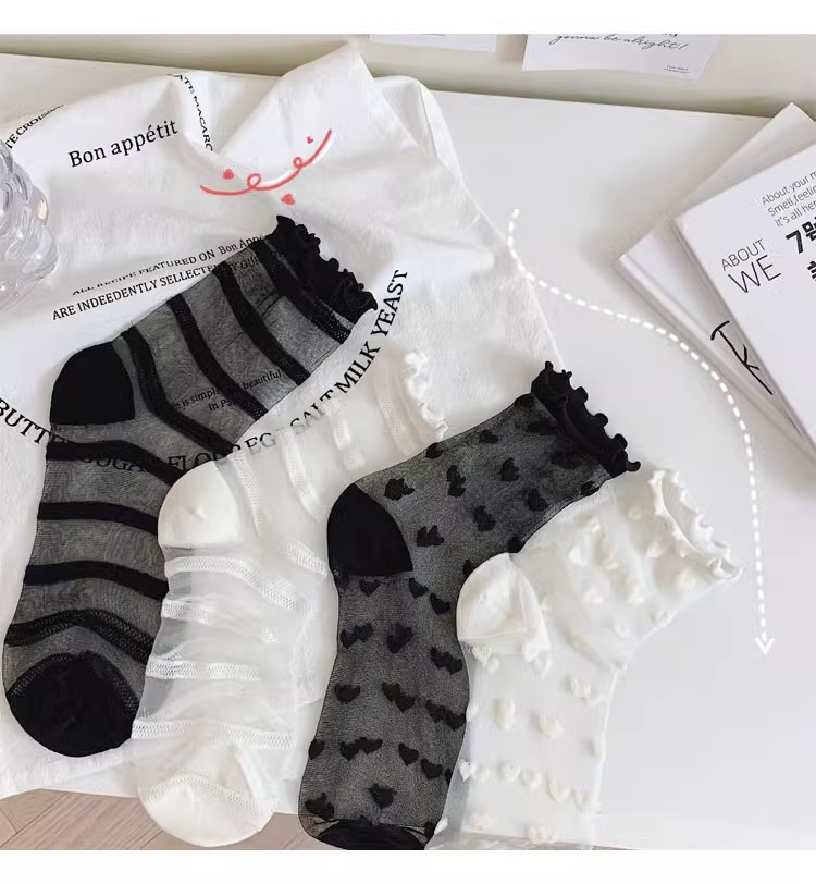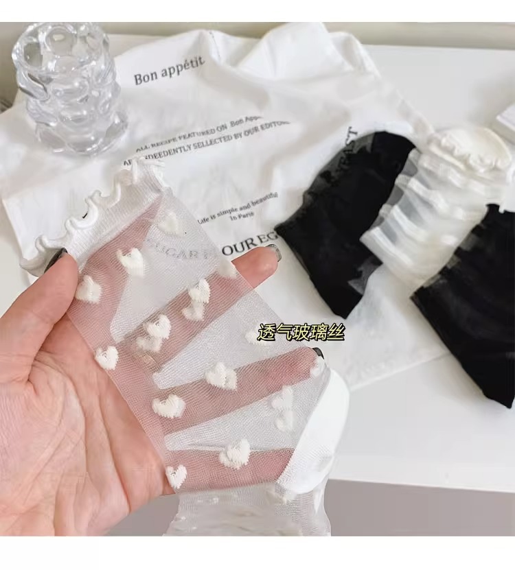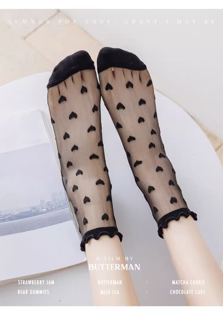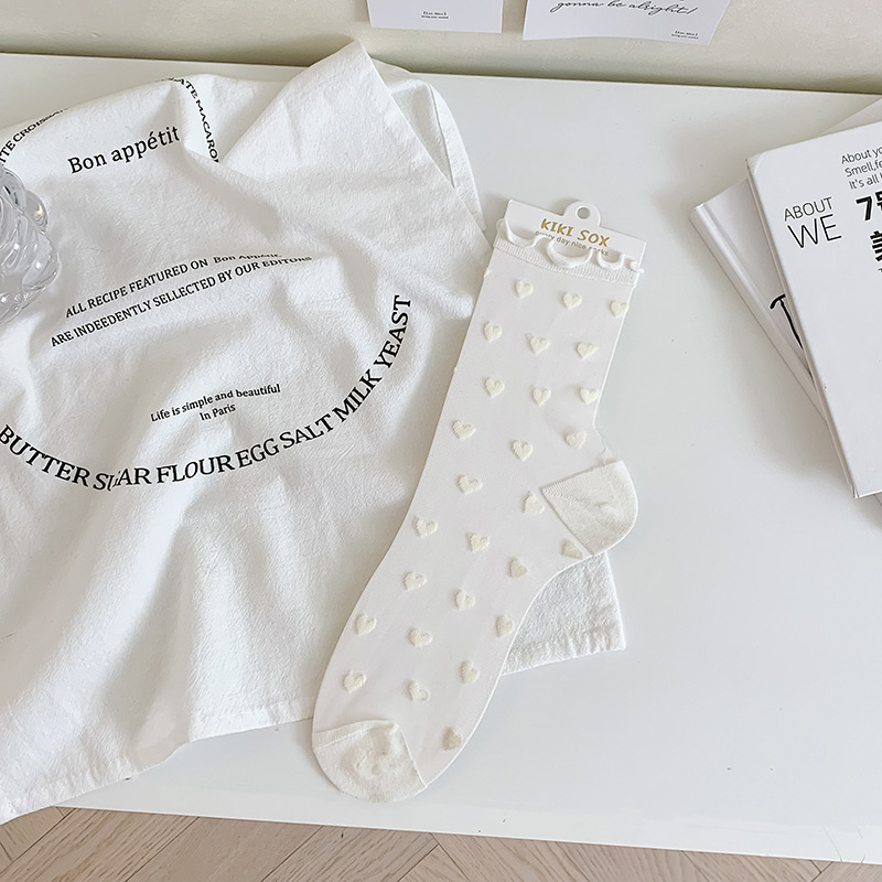 Jk 레이스 양말 여성 흑백 사랑 유리 실크 중간 튜브 양말 인터넷 연예인 줄무늬 소녀 순수한 욕망 유리 스타킹스토어 가기