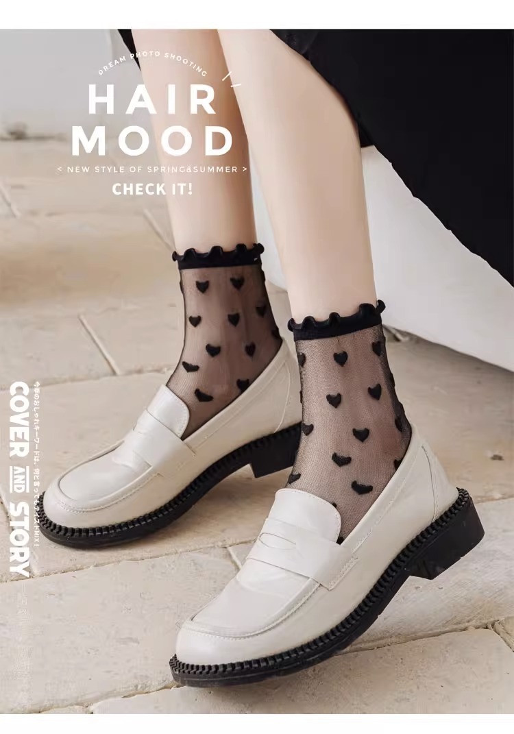 Jk 레이스 양말 여성 흑백 사랑 유리 실크 중간 튜브 양말 인터넷 연예인 줄무늬 소녀 순수한 욕망 유리 스타킹