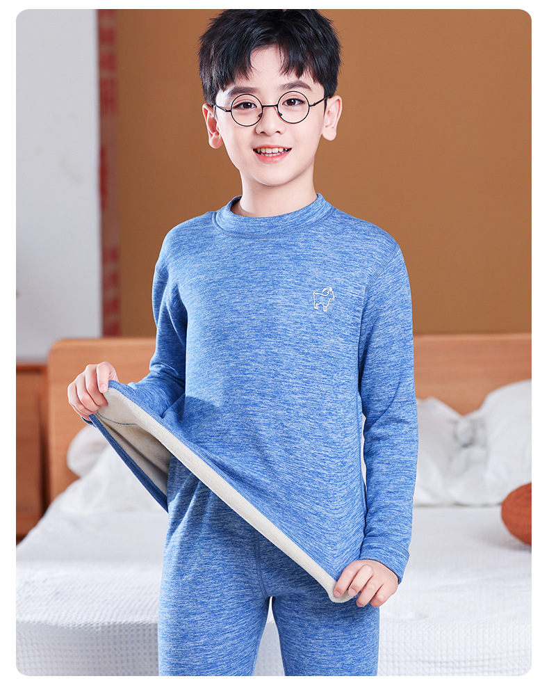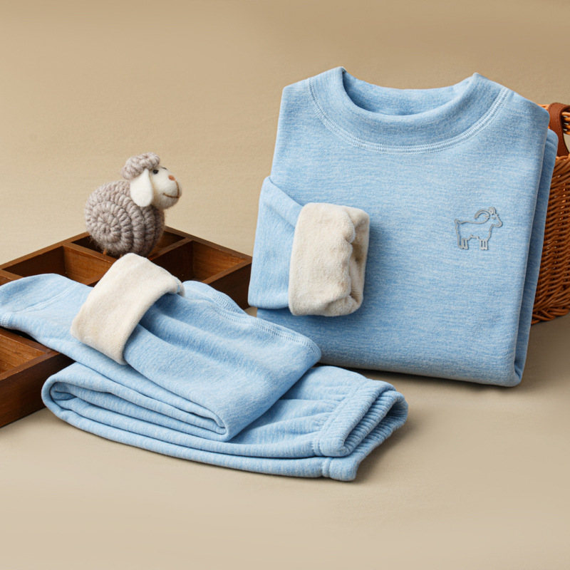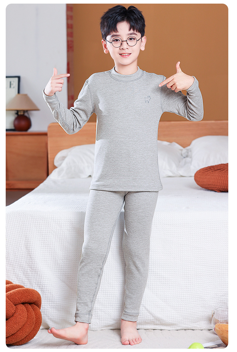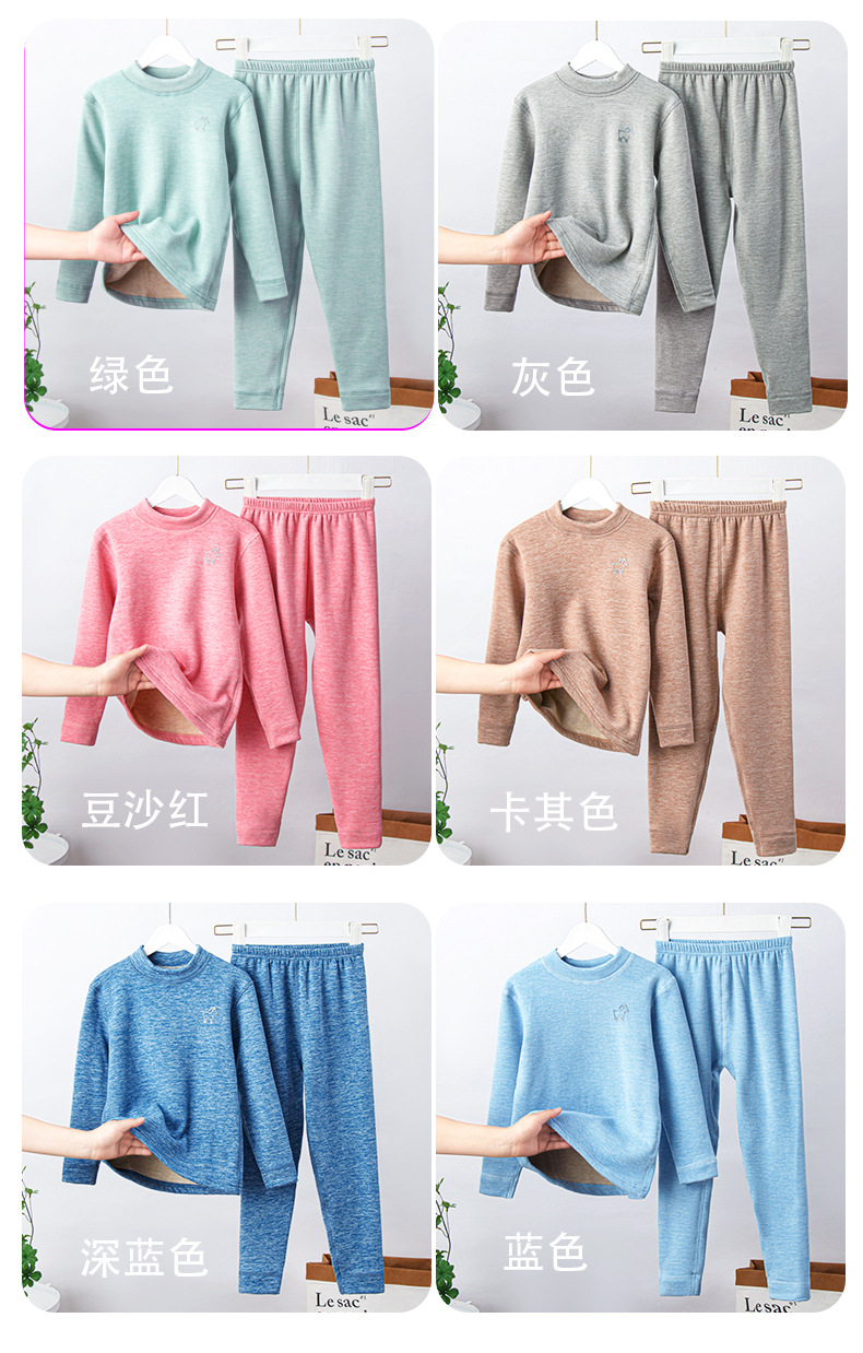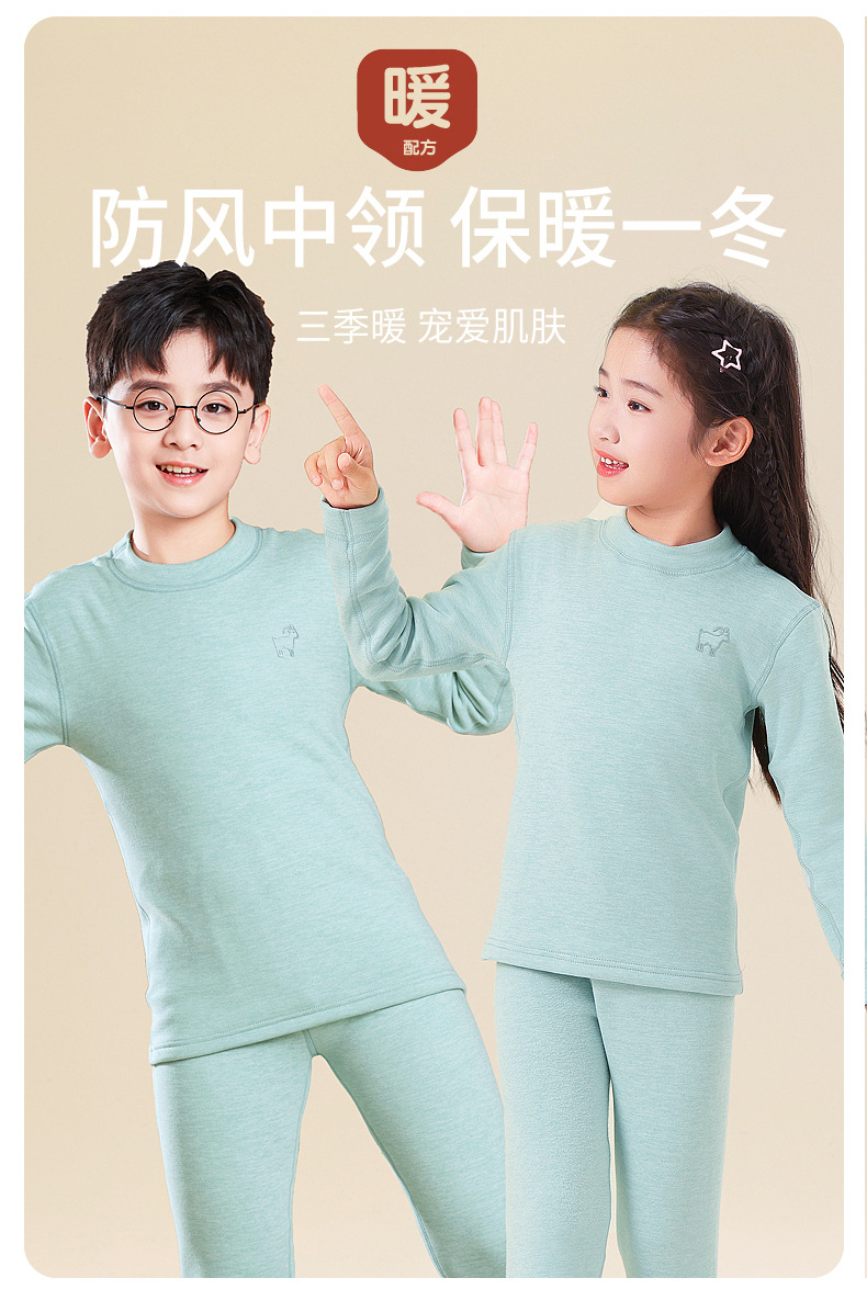 가을, 겨울 하프 터틀넥 어린이 양모 실크 열 속옷 세트 중소형 소년과 소녀 두꺼운 가정 의류 세트스토어 가기