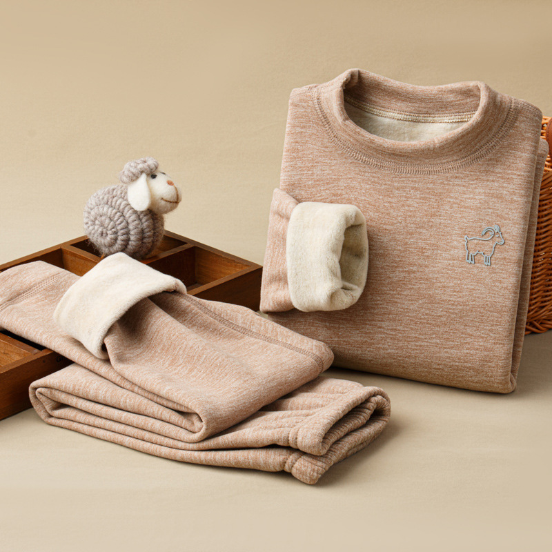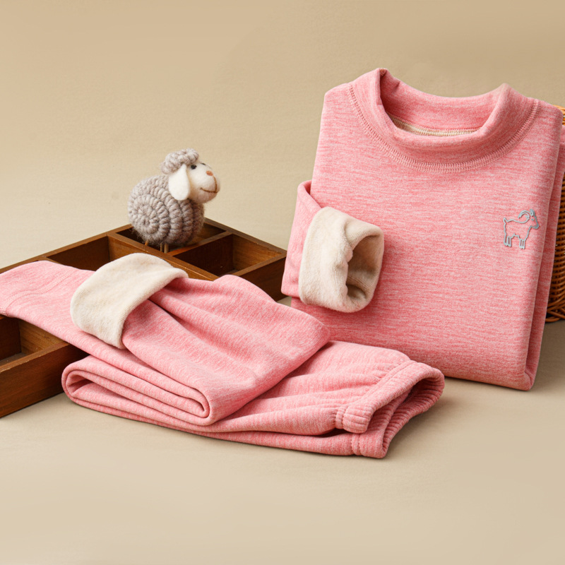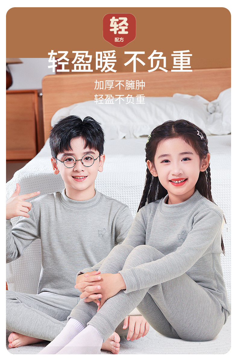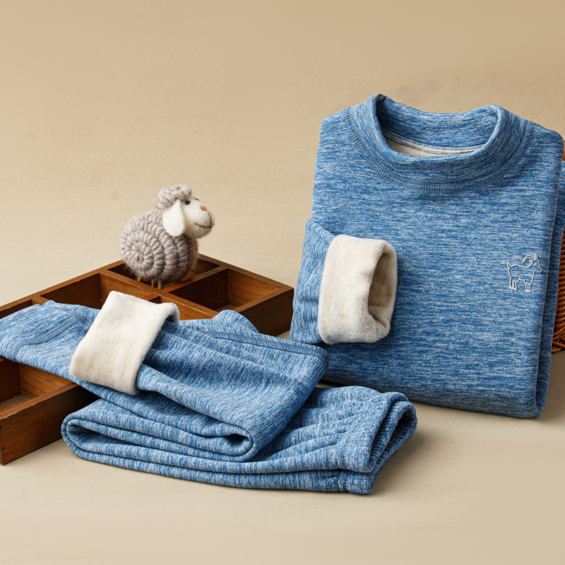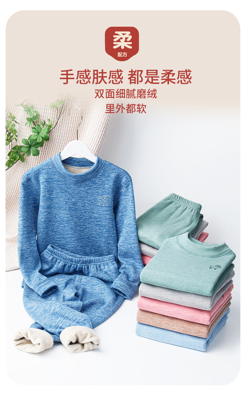 가을, 겨울 하프 터틀넥 어린이 양모 실크 열 속옷 세트 중소형 소년과 소녀 두꺼운 가정 의류 세트스토어 가기