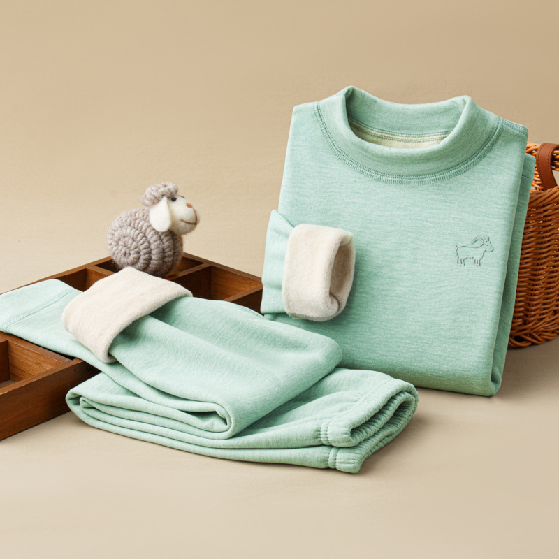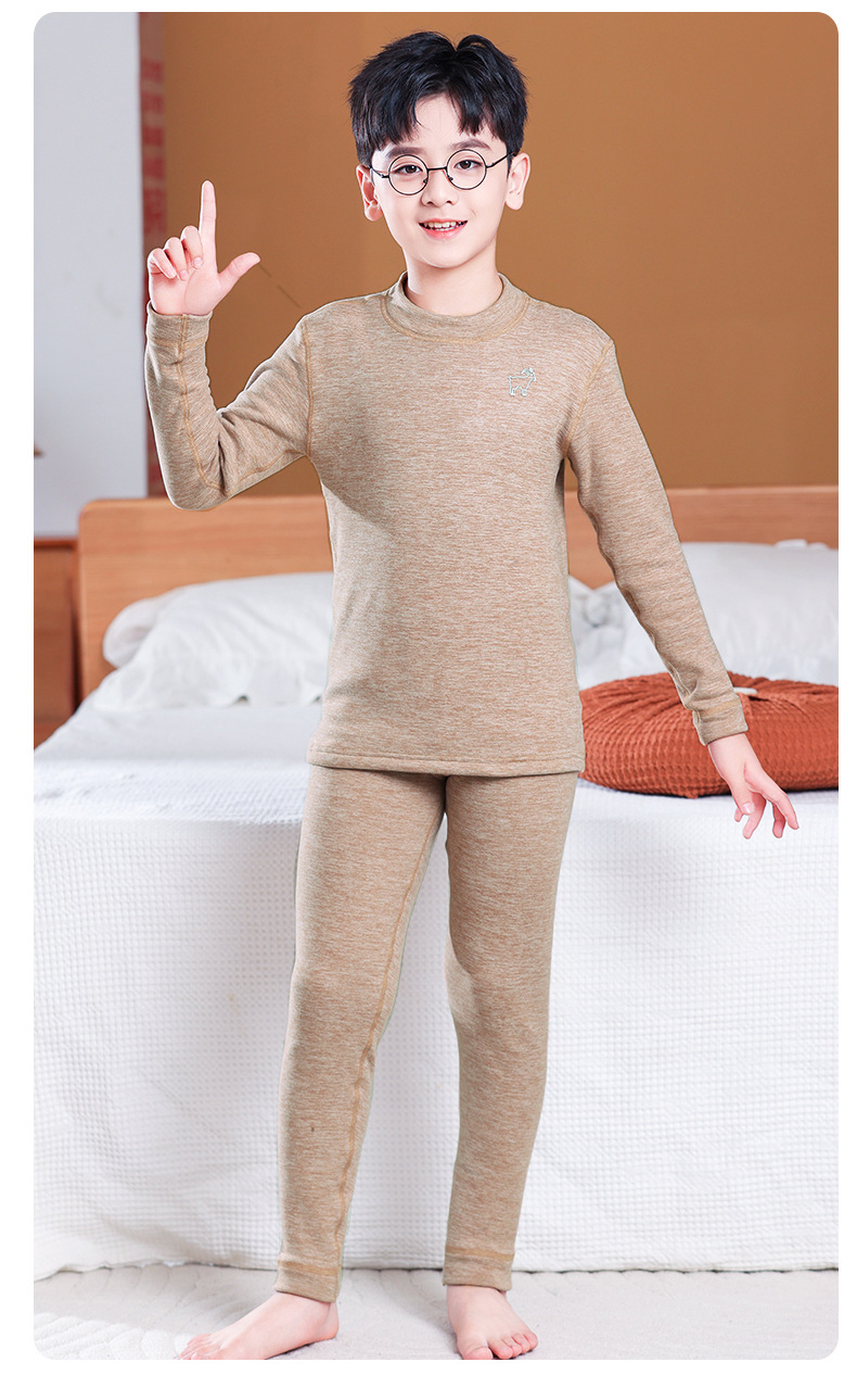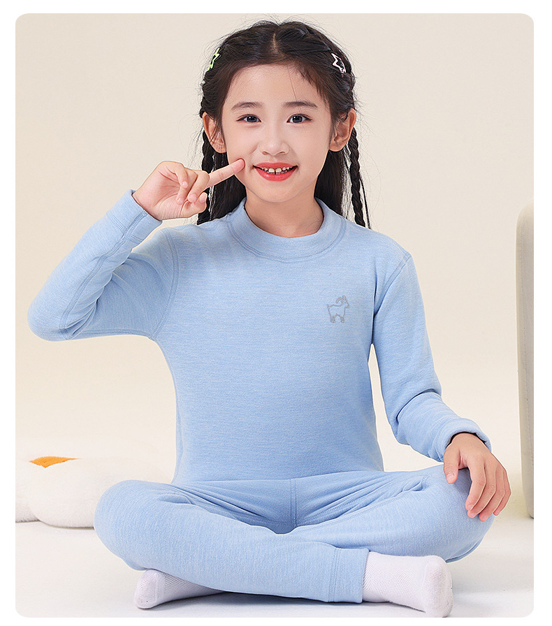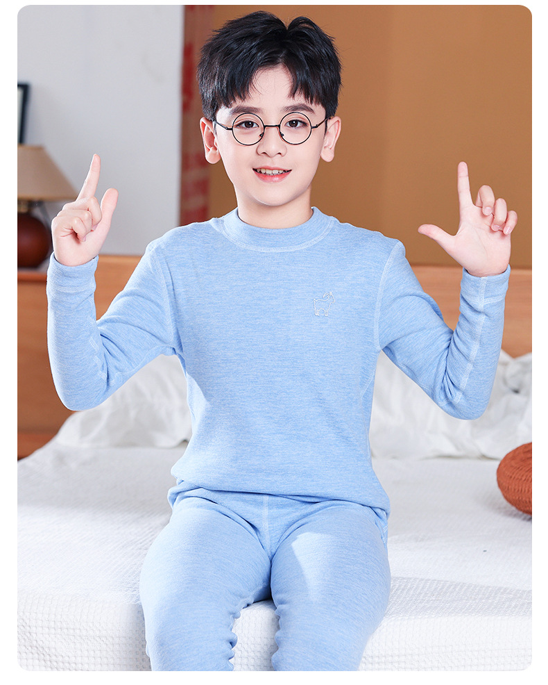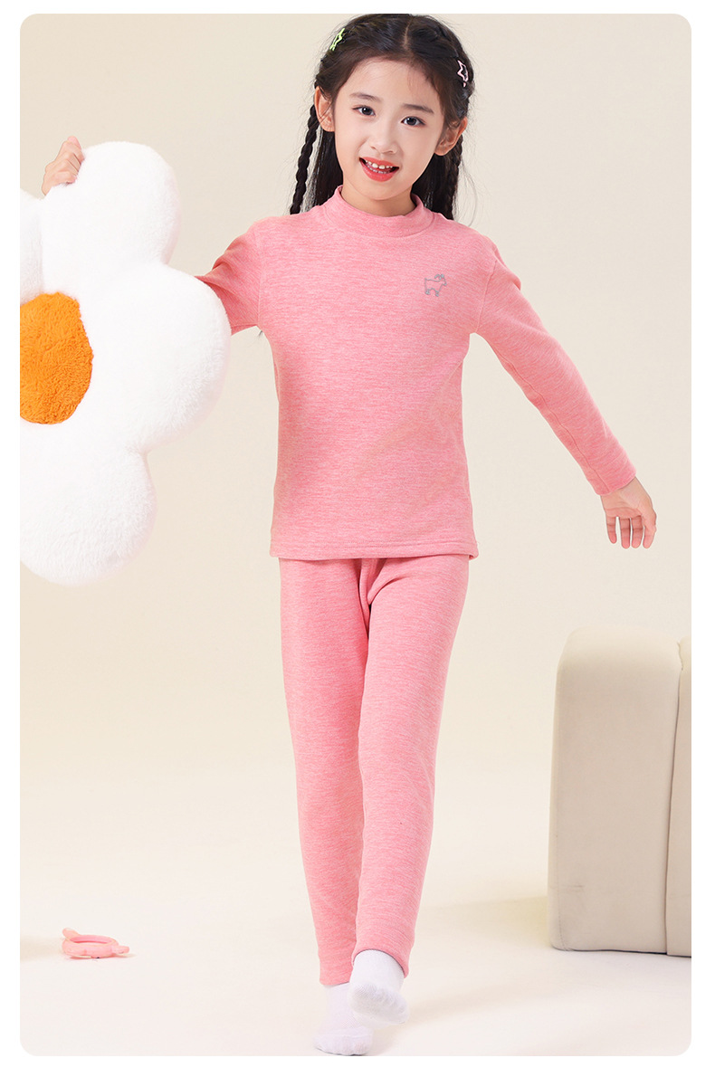 가을, 겨울 하프 터틀넥 어린이 양모 실크 열 속옷 세트 중소형 소년과 소녀 두꺼운 가정 의류 세트