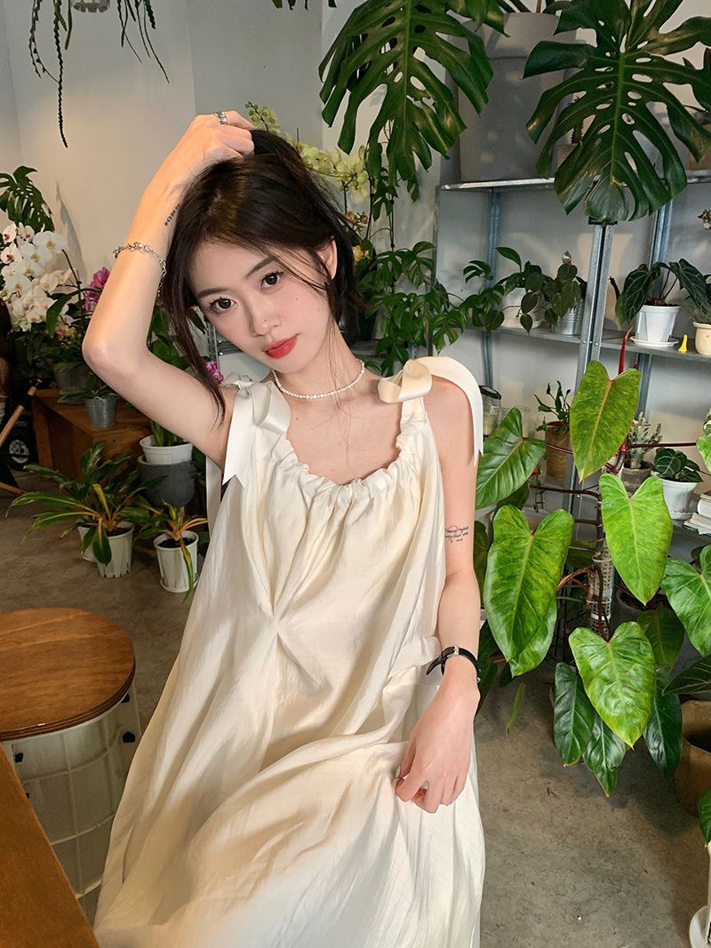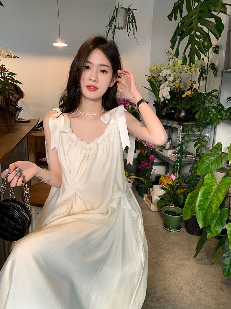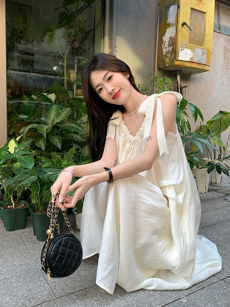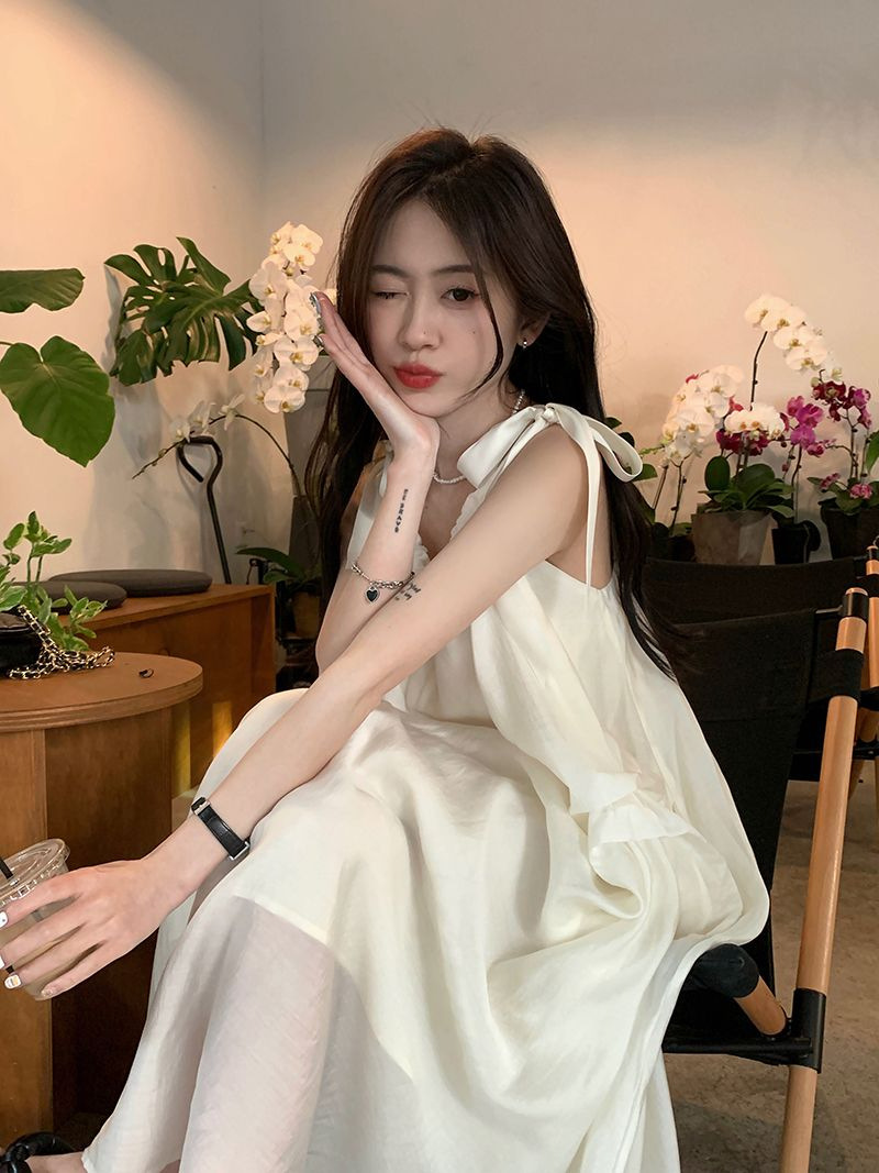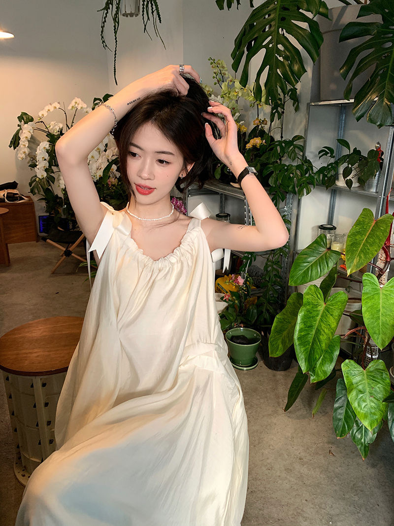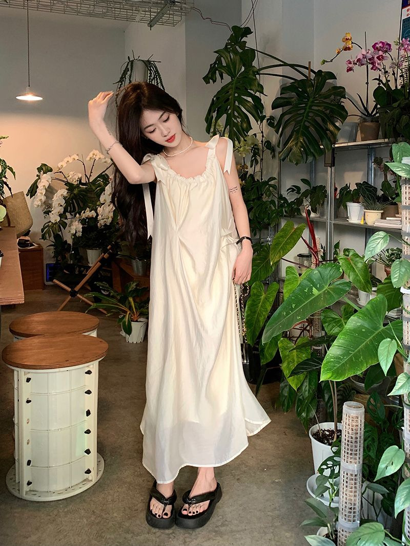 여름 달콤한 2025 새로운 스타일 슬림 패션 부드러운 스타일 미색 중간 길이 서스펜더 드레스 여성 세련된스토어 가기