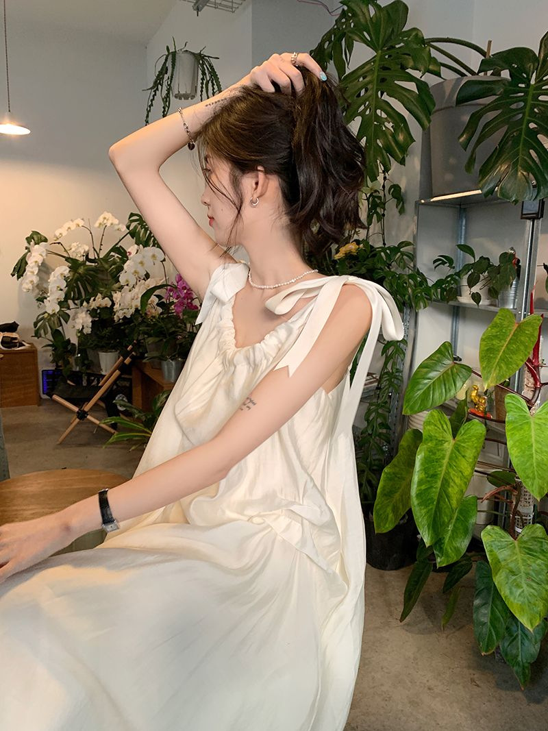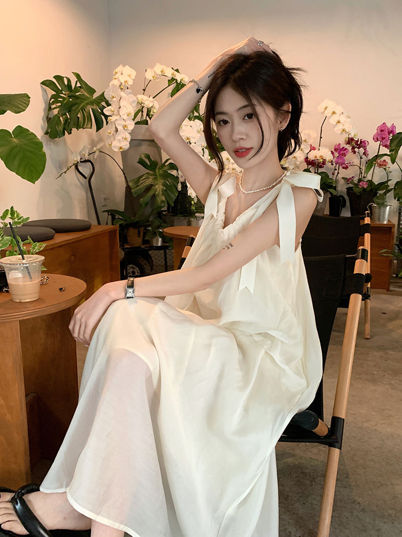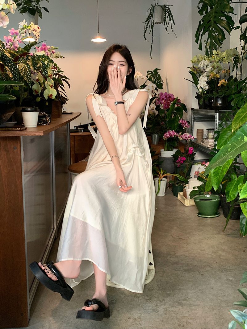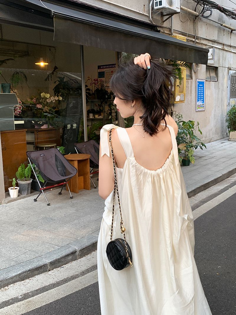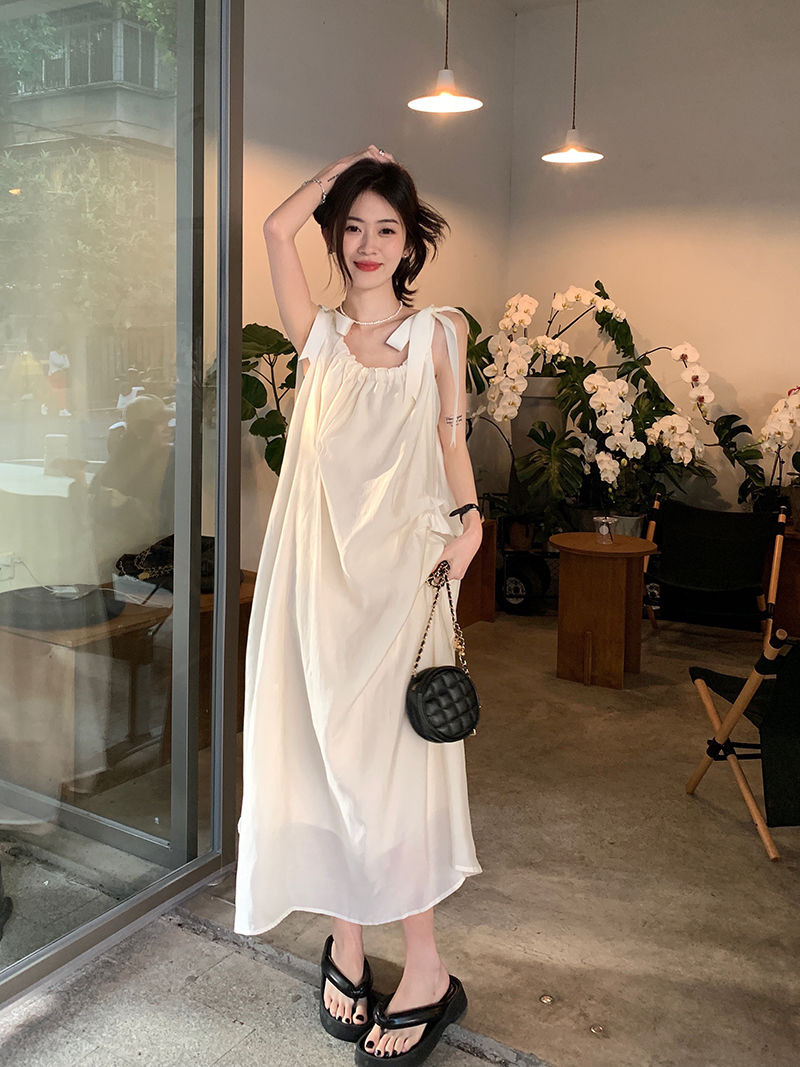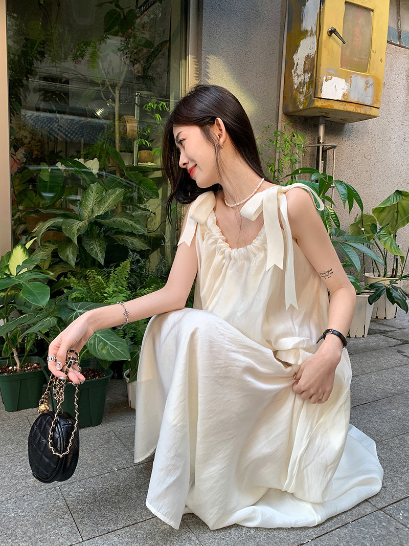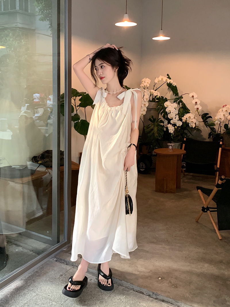 여름 달콤한 2025 새로운 스타일 슬림 패션 부드러운 스타일 미색 중간 길이 서스펜더 드레스 여성 세련된스토어 가기