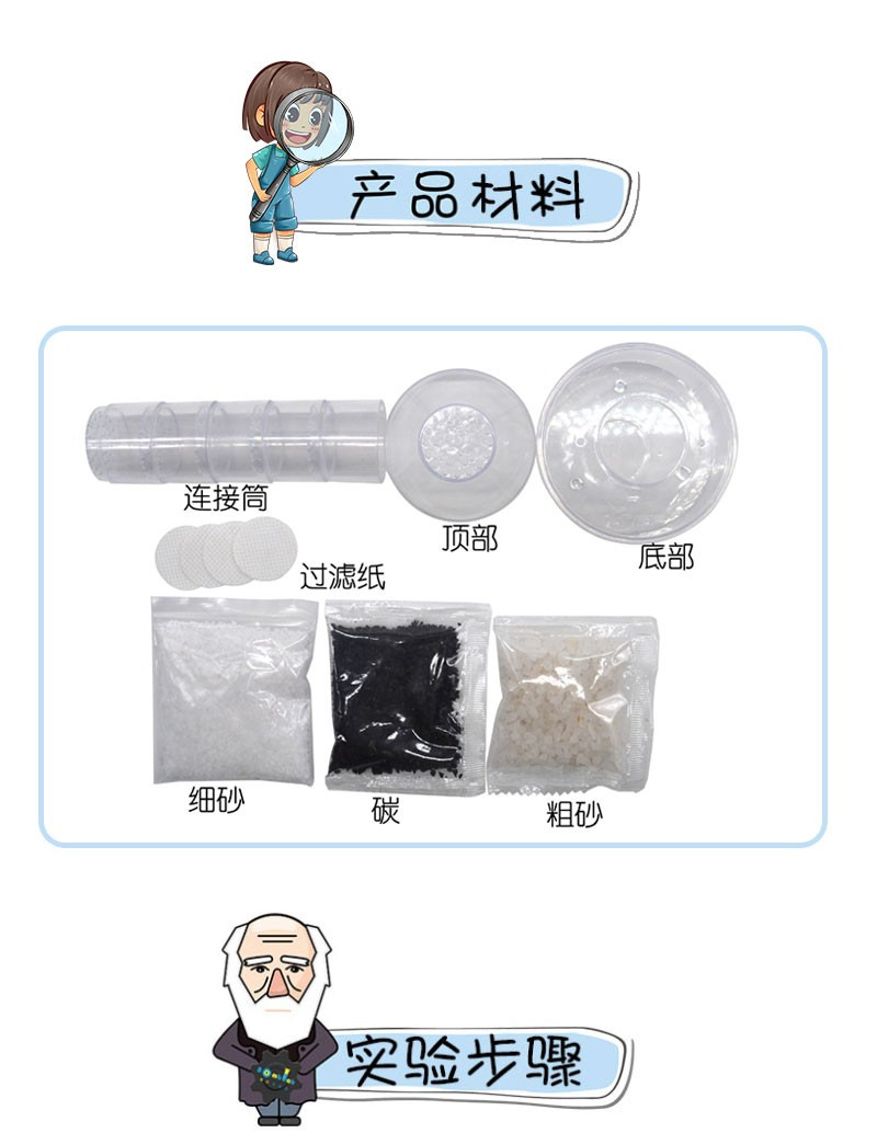 과학기술 소형 제작 수제 정수기 STEAM 어린이 교육용 과학 간단한 정수 실험 DIY 재료 패키지