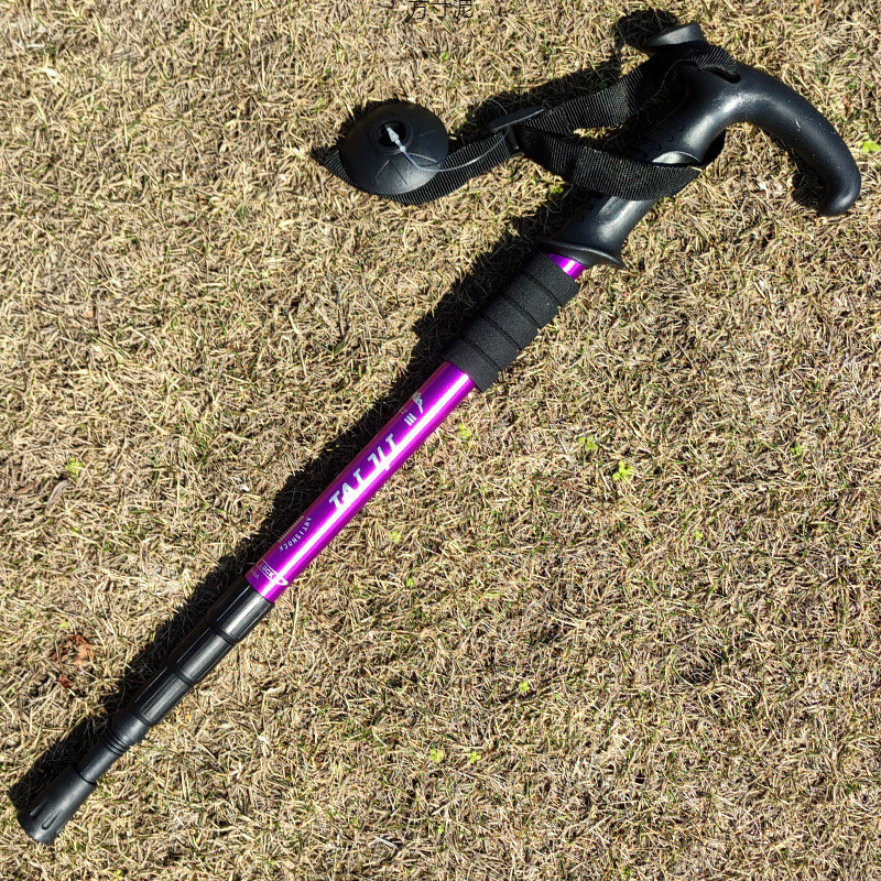 야외 트레킹 스틱 4 섹션 초경량 알루미늄 합금 핸들 곡선 핸들 스트레이트 핸들 텔레스코픽 하이킹 스틱 지팡이 다기능 및 경량