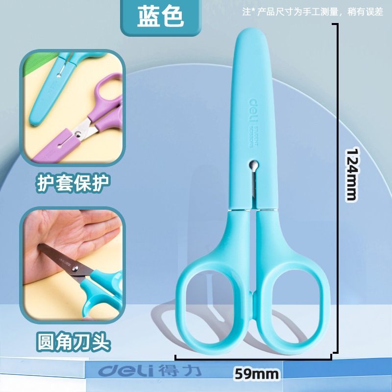 델리가위, 보호커버가 있는 어린이 안전가위, 학생용 특수 수제가위, 손을 다치지 않는 둥근머리가위