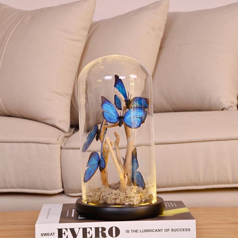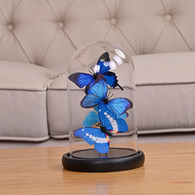 • 빛이 있는 파란색 나비 유리 커버 14*26cm