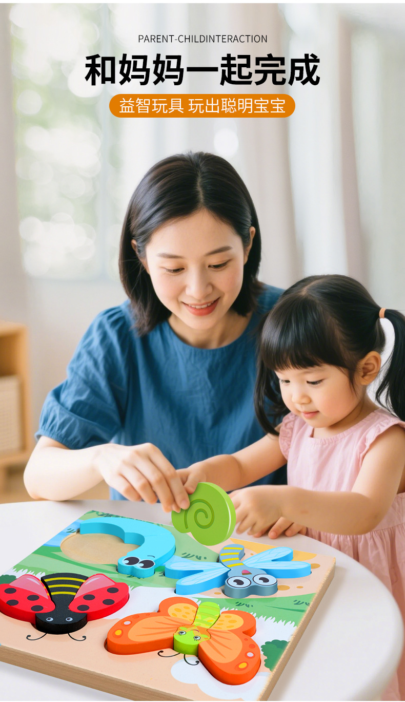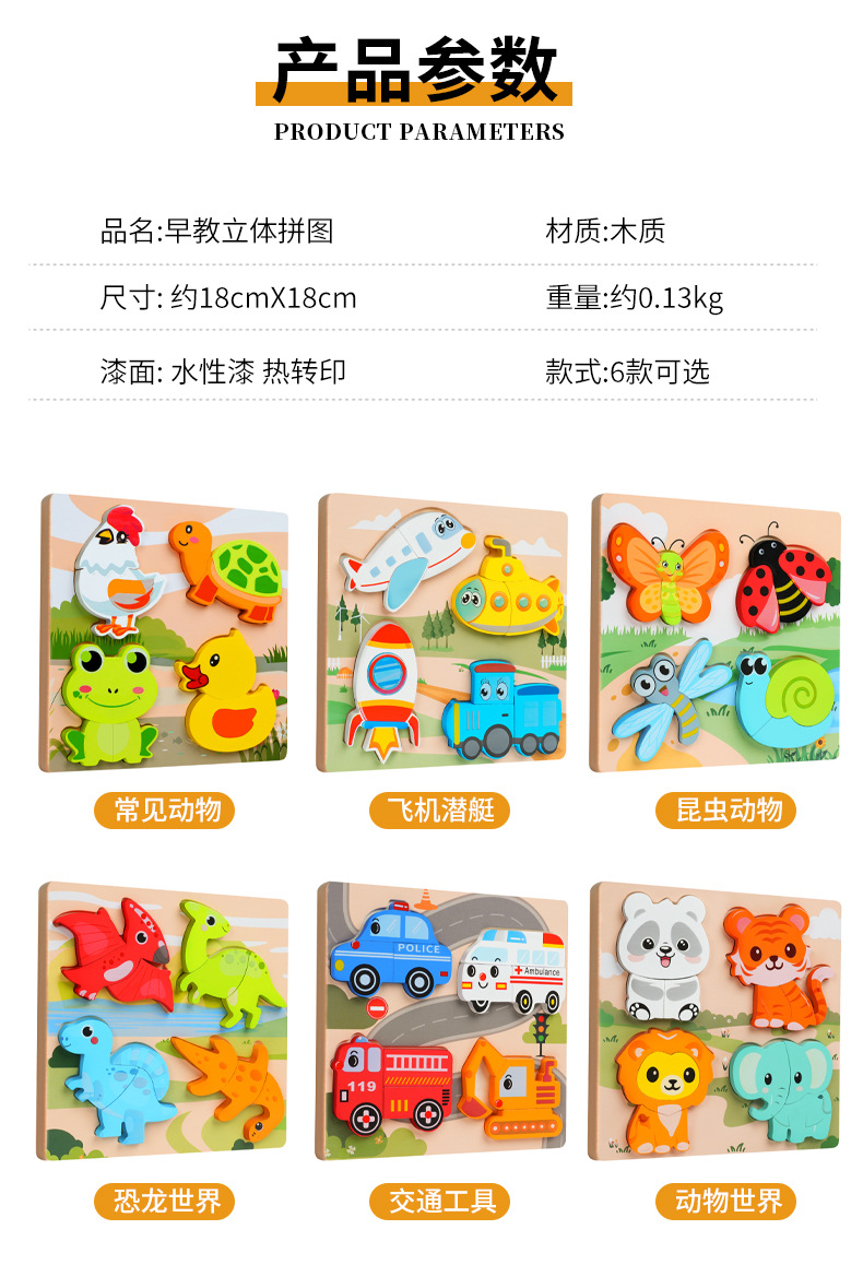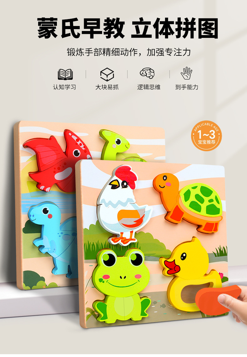 교육용 어린이 퍼즐 3D 입체 장난감 몬테소리 나무 동물 블록 1~3세 선물 장난감 조립