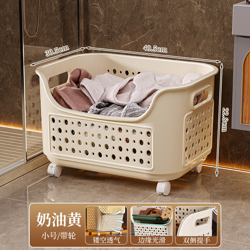 • 크림 옐로우 [소형] 쌓인 더러운 빨래 바구니 (바퀴 없음)